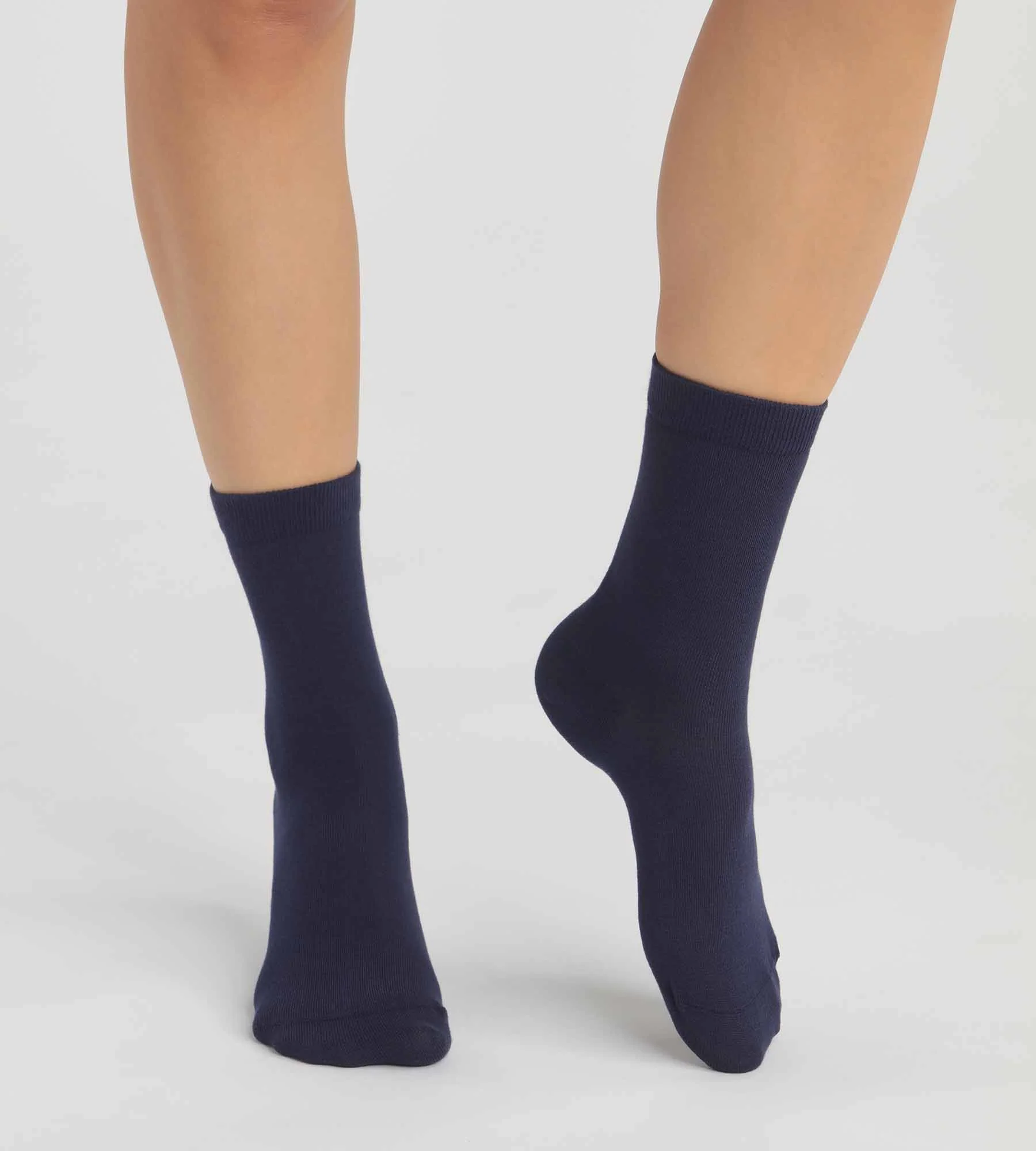 Apuesta por la versatilidad de la mano del pack de 2 pares de calcetines de mujer de algodón orgánico Azul Marino Dim Good