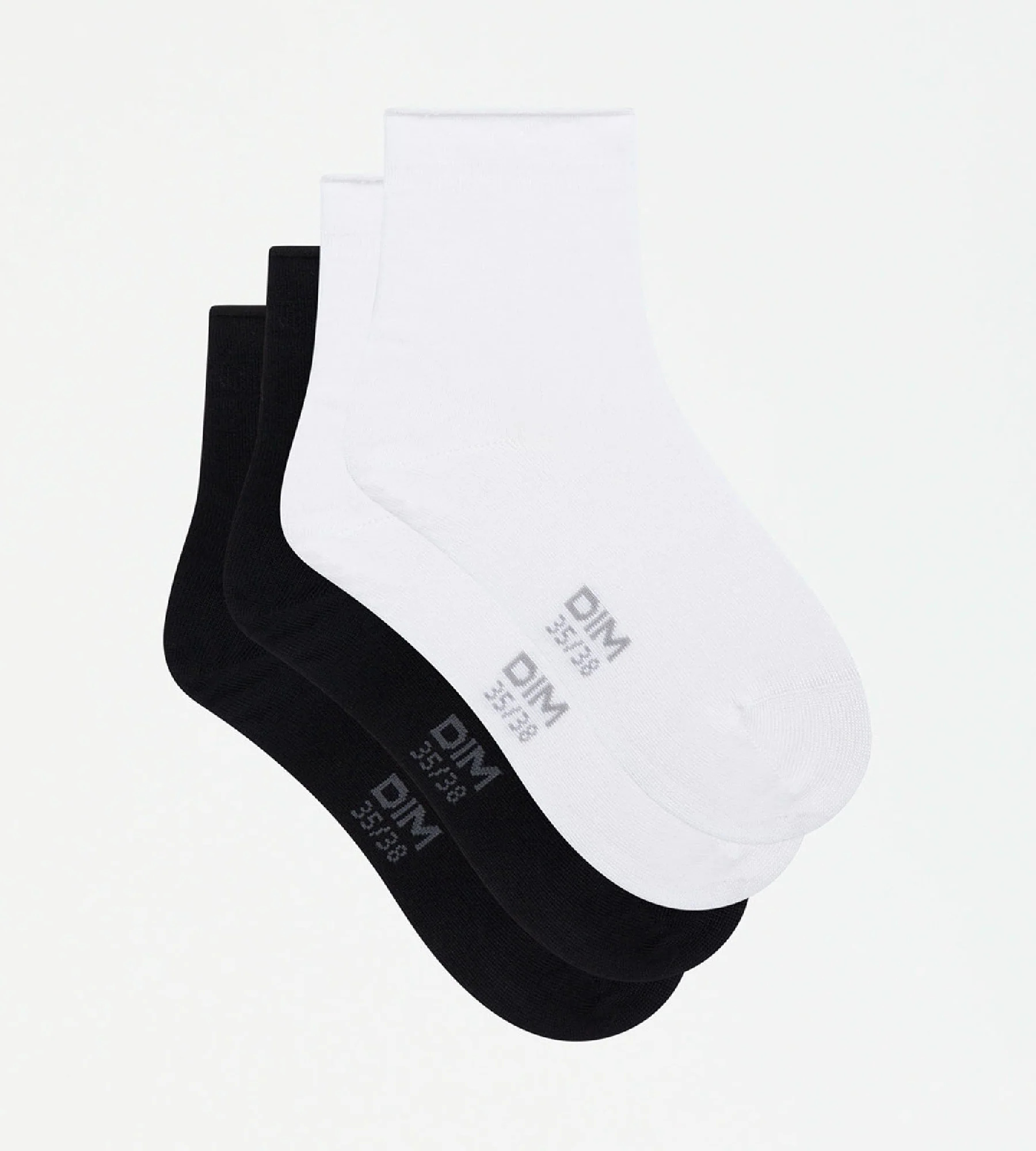 Para un look impecable cada día, opta por este dúo de calcetines bajos de mujer en los eternos e inmortales colores blanco y negro. Deslízate en estos pares hechos de modal (78%) y experimenta una sensación de seda envolvente en cada momento. Cuidado, ¡te volverás adicta a ellos! Fabricados con una banda de sujeción enrollada muy flexible, costuras planas y malla reforzada en los extremos, estos cálidos calcetines para mujer siguen tus pasos con una facilidad inigualable.