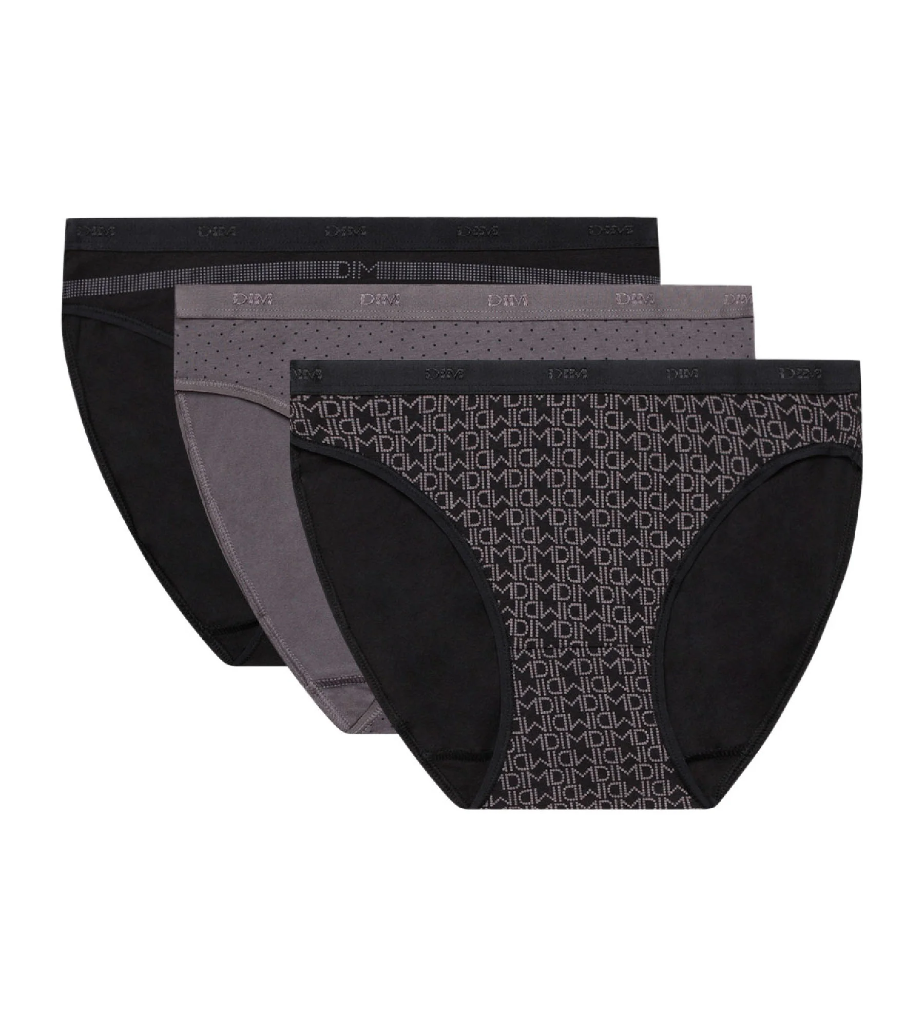 Les Pockets de DIM es una gama clásica y cómoda, fabricada en algodón elastano para adaptarse a los movimientos y que la puedas llevar a diario. En esta ocasión, te presentamos un lote de tres slips de mujer en gris y negro con estampados de moda, perfectos para un look sencillo y delicado. La cintura de estos slips lleva el logotipo de DIM en el mismo tono pero más brillante, para darles un toque delicado y moderno a la vez. Además, los acabados y la cintura son planos para ofrecerte un mayor confort y para que te olvides de que los llevas puestos. Están disponibles en distintas tallas, consulta nuestra lista y pídenos los que mejor se ajusten a ti.