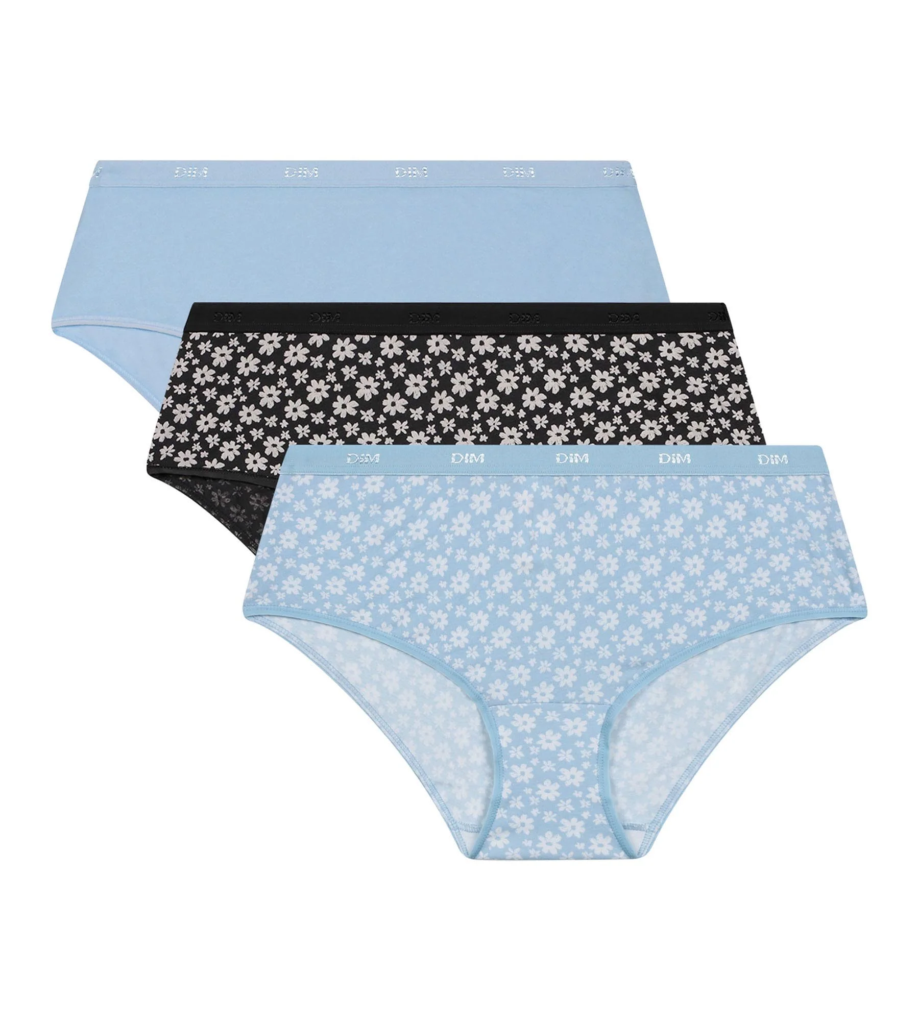 Combina desenfado y feminidad con el Pack de 3 culottes de algodón elástico para mujer Les Pockets en azul y gris con flores.