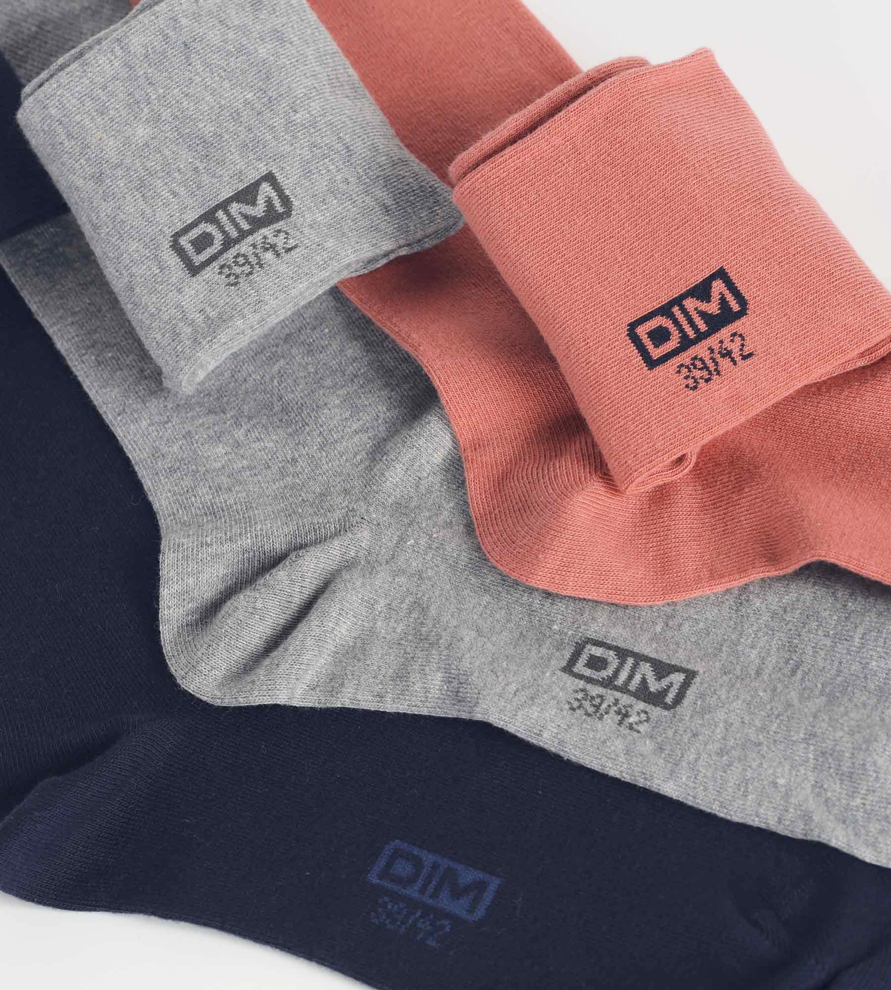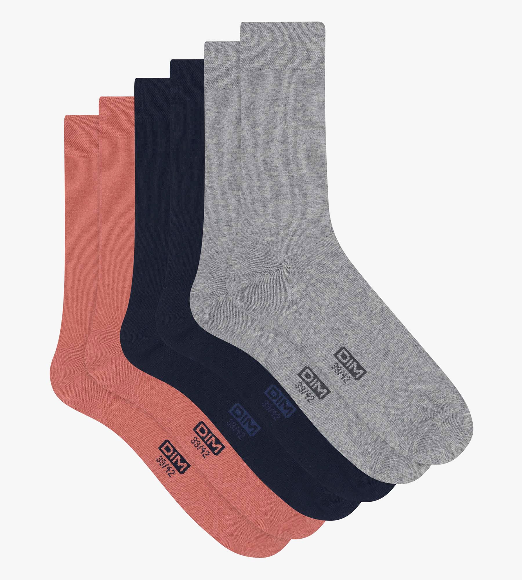 Elige este pack de 3 pares de calcetines altos de algodón Dim para hombre en colores azul marino, rosa y gris para disfrutar de una comodidad óptima y un estilo atemporal.