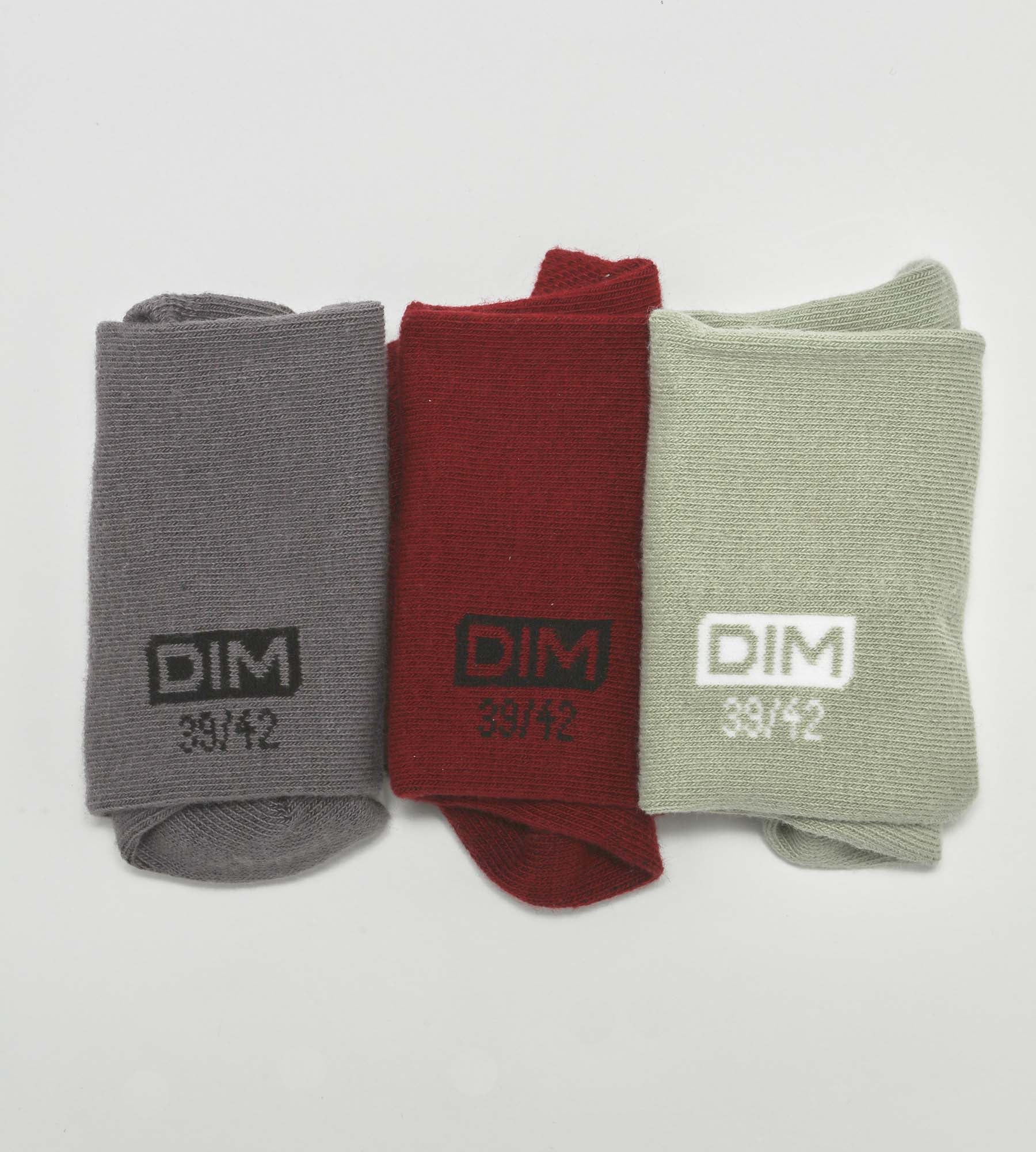 Por todas estas razones, serán nuevos básicos en tu armario todo el año. El pack de 3 calcetines de hombre de algodón en colores vivos Dim Coton alegrará tu cotidianidad y te ofrecerá confort. Los calcetines se adaptan a todo tipo de calzado, regalando a tus looks un poco más de optimismo gracias a los colores.