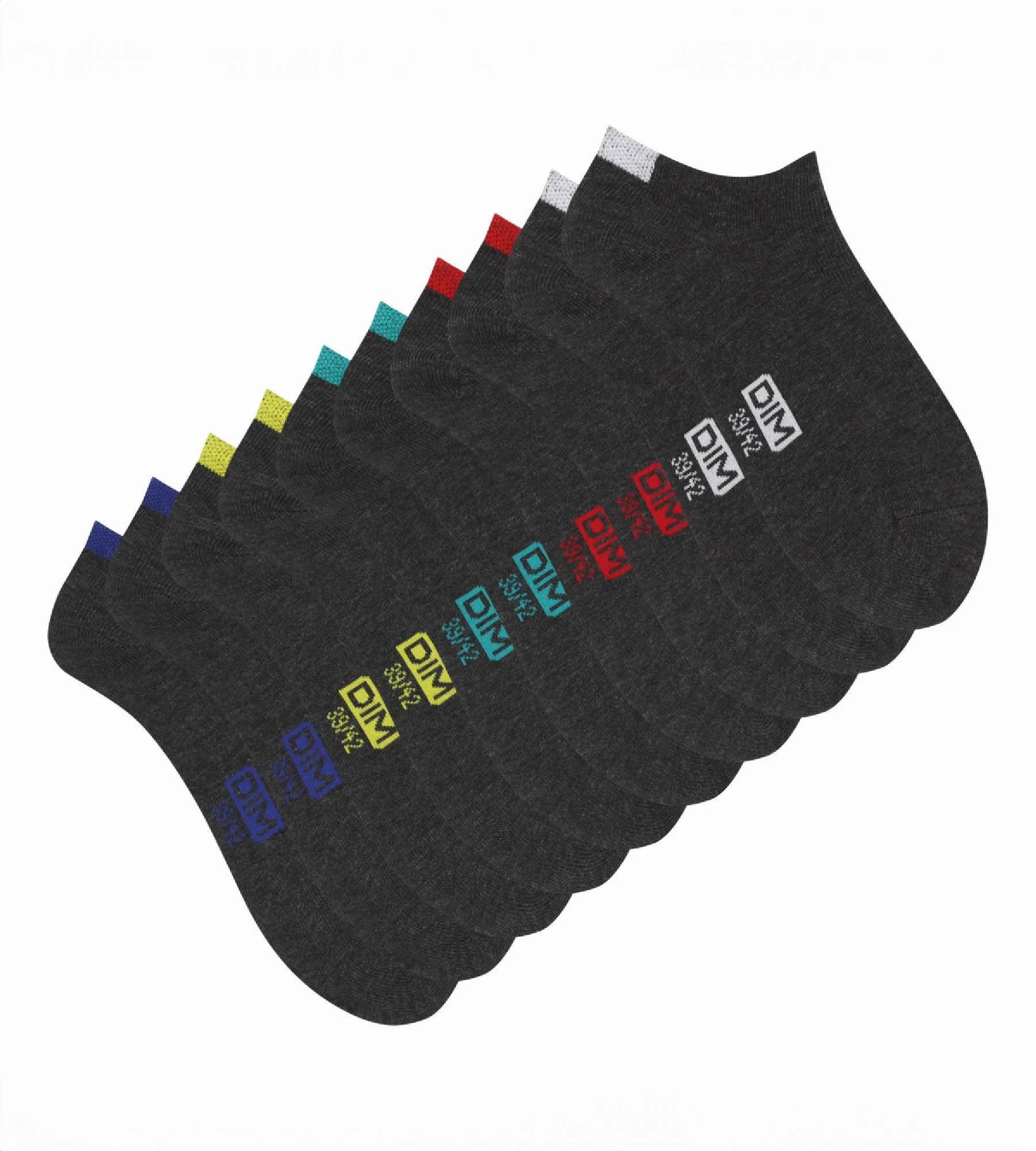 Apuesta por el pack de 5 pares de calcetines cortos de hombre Gris Moyen Chiné de algodón, con marcadores EcoDim de colores, ¡muy prácticos y atemporales!