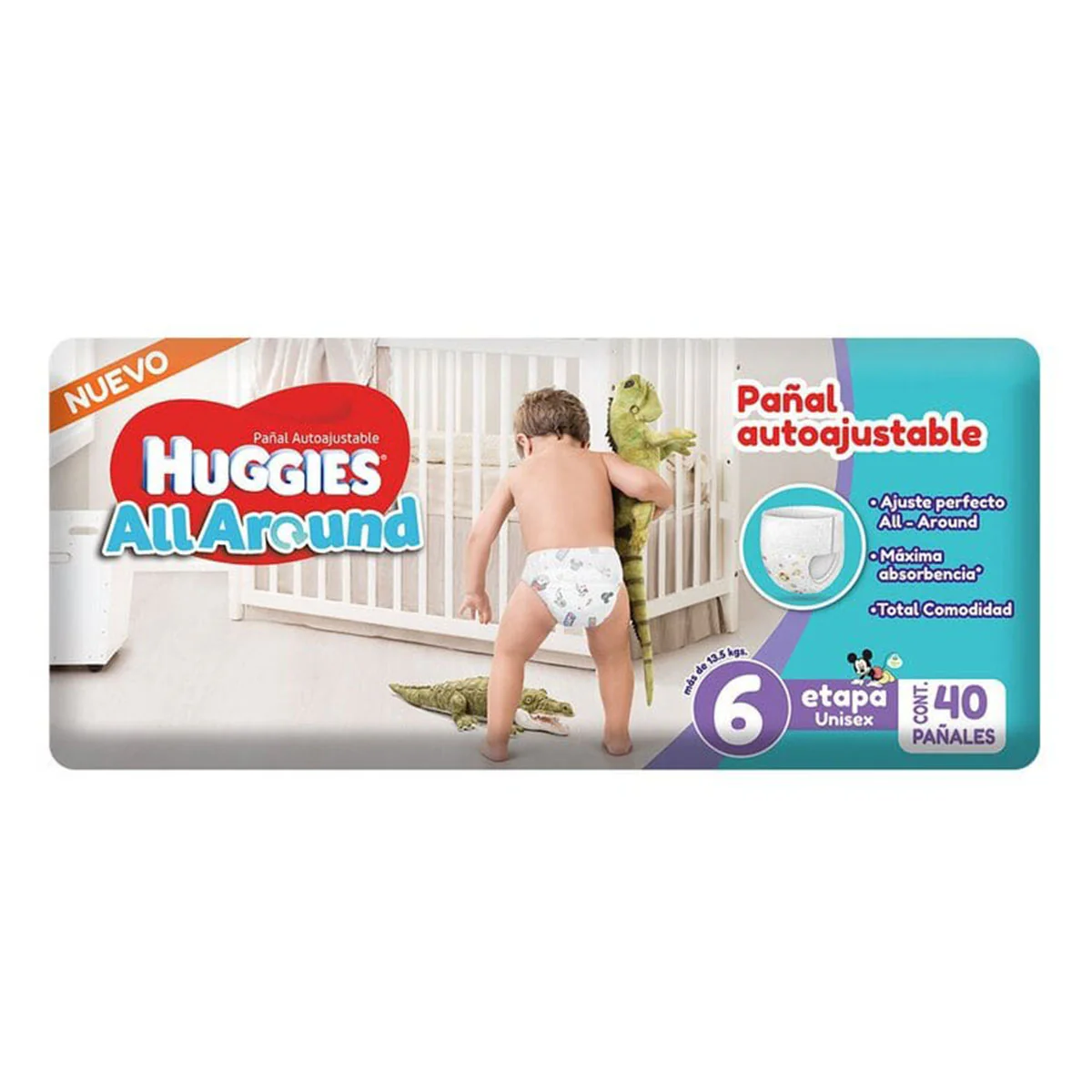 Pañales Huggies All Around Etapa 6, De 40 Piezas, Protección Para Tu Bebé, Interior Acolchonado Dermo Protect. De Uso Fácil.