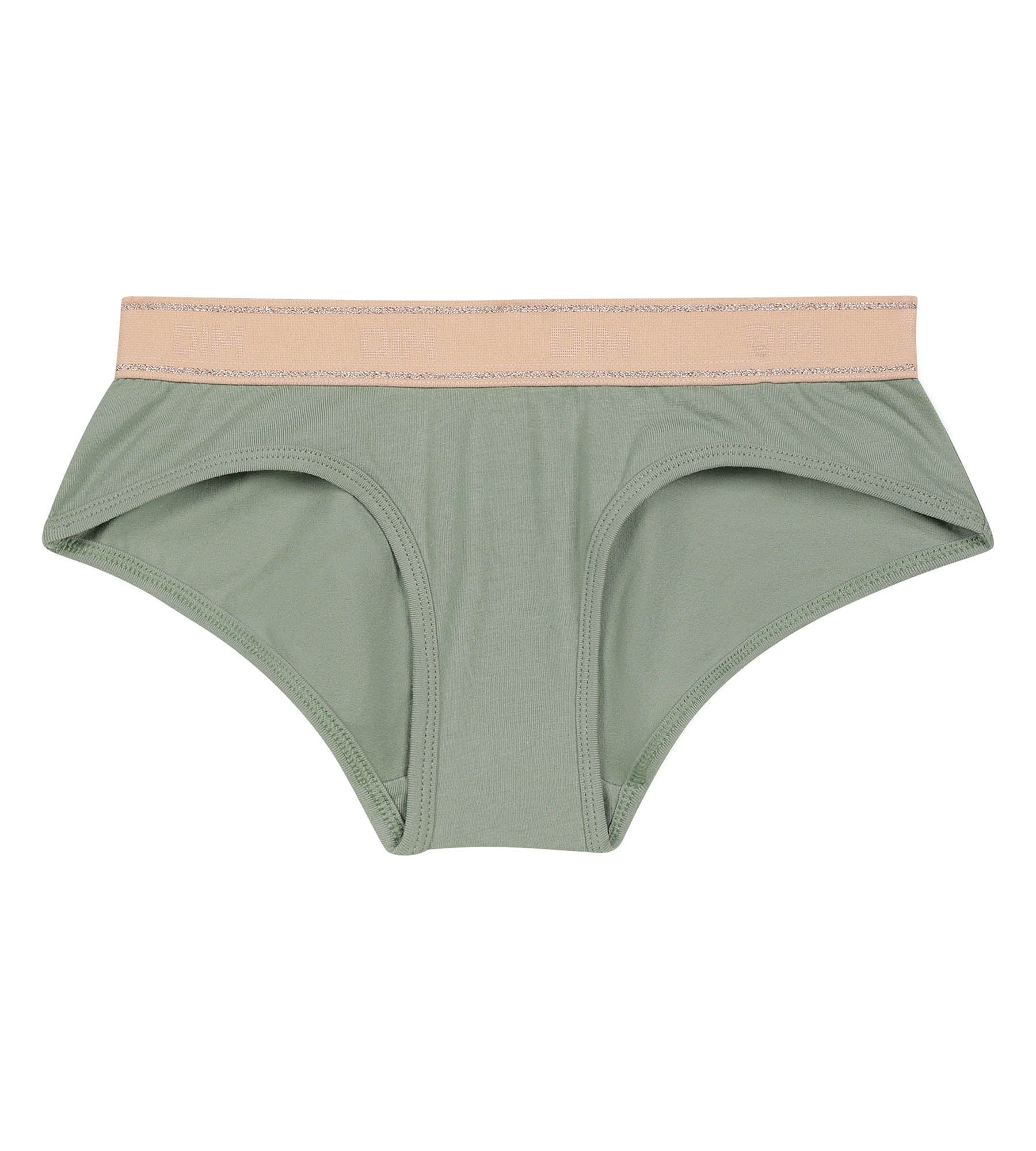 Un auténtico aliado para el día a día, el pantalón corto infantil Dim Sport combina algodón elástico agradable de llevar con un look ultrafresco en verde salvia. Gracias a su cinturilla rosa extra ancha, su logotipo Dim y sus líneas de lúrex, se mantiene en su sitio sin apretar y ¡con mucho estilo! Una buena elección para las chicas jóvenes a las que les encanta la ropa interior práctica y a la última!