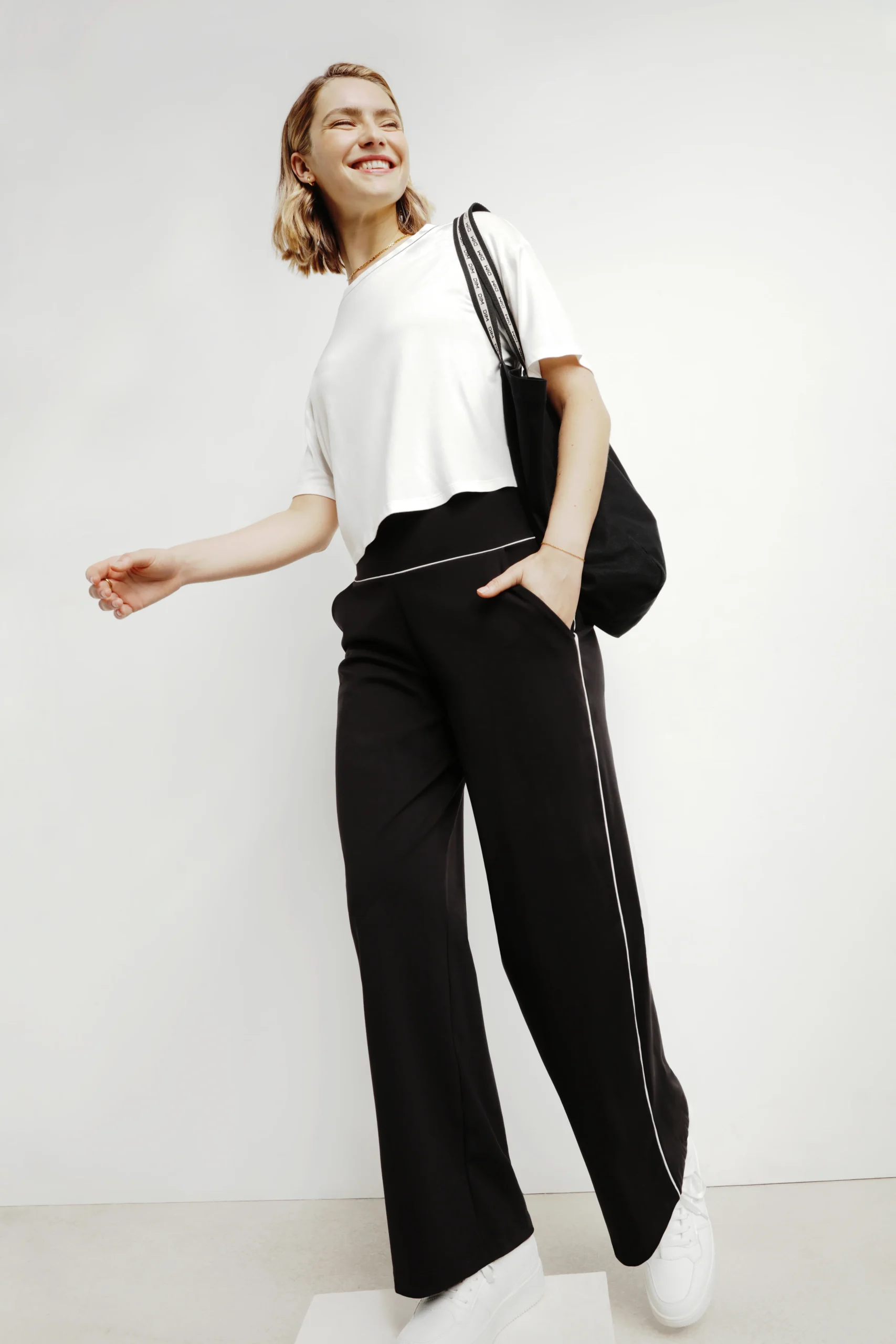 Pantalón deportivo ancho de mujer en punto elástico negro Dim Move