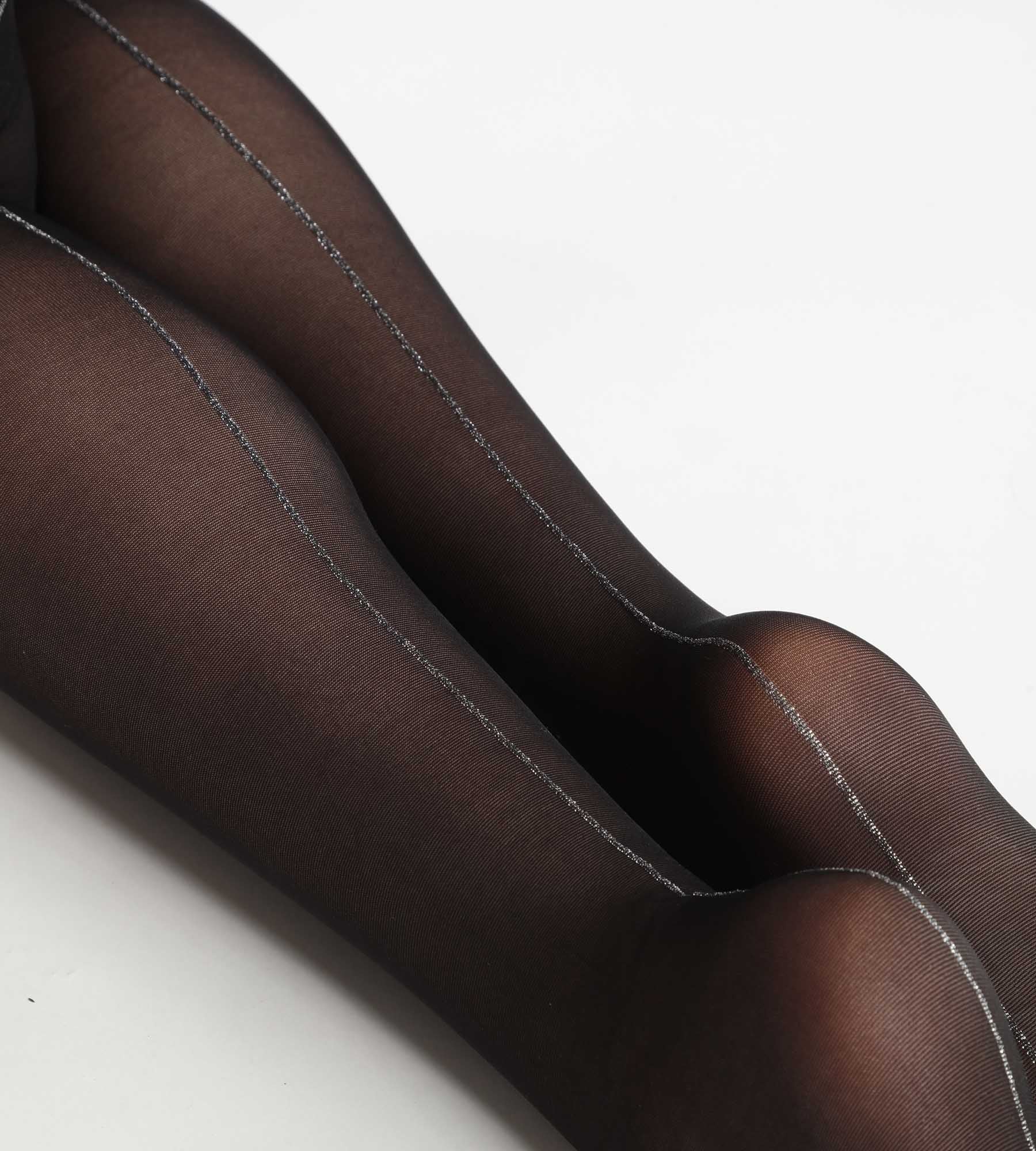 Siéntete una estrella del pop con el panti transparente negro con banda de lúrex plateado Dim Style
