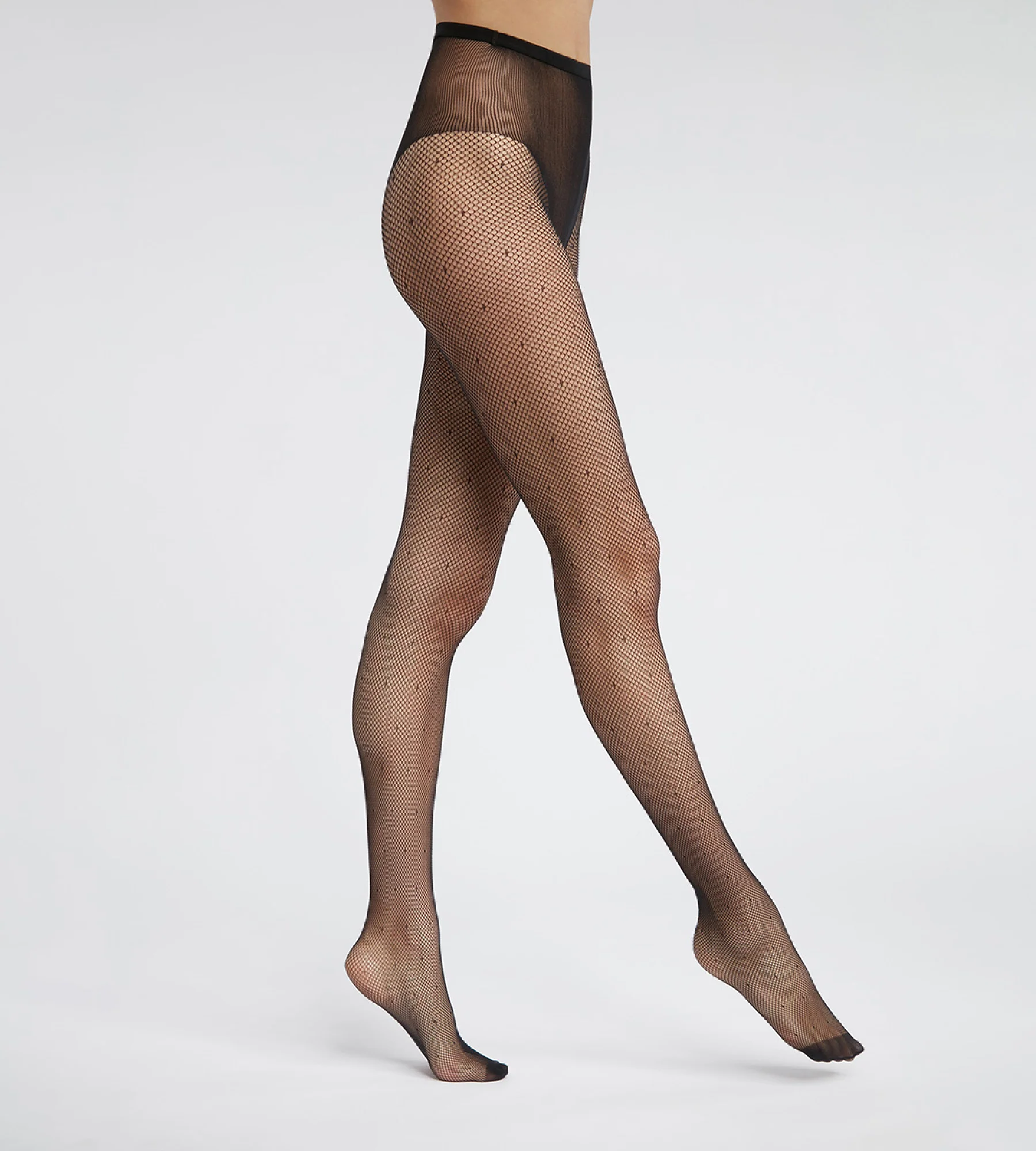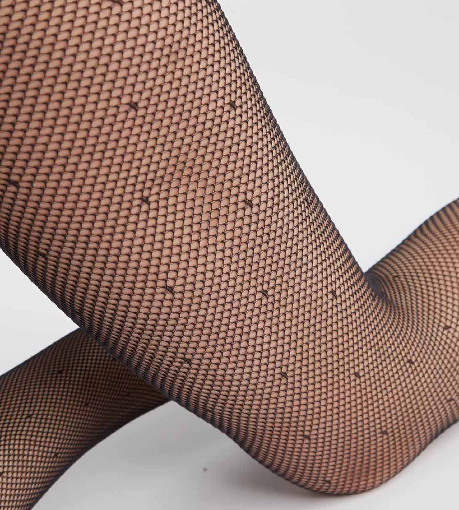 Déjate conquistar por nuestros pantis de rejilla Negro Dim Style con braga escotada y diseño efecto plumeti, tu nuevo aliado para seducir.