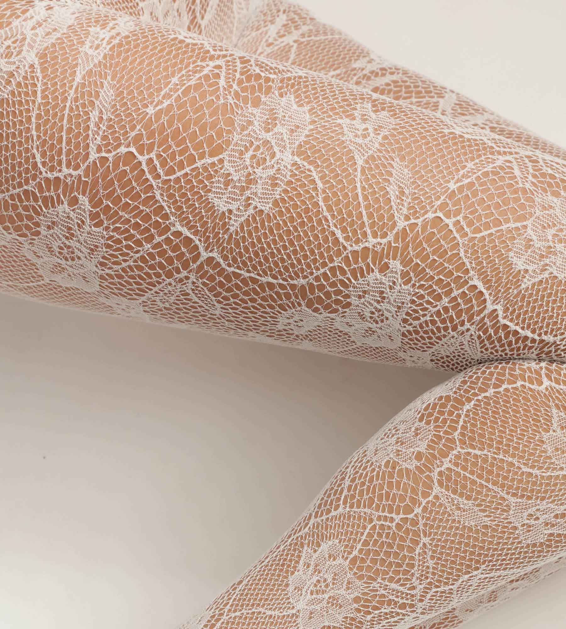 Pantis de rejilla y encaje floral para mujer Baroque White Dim Style