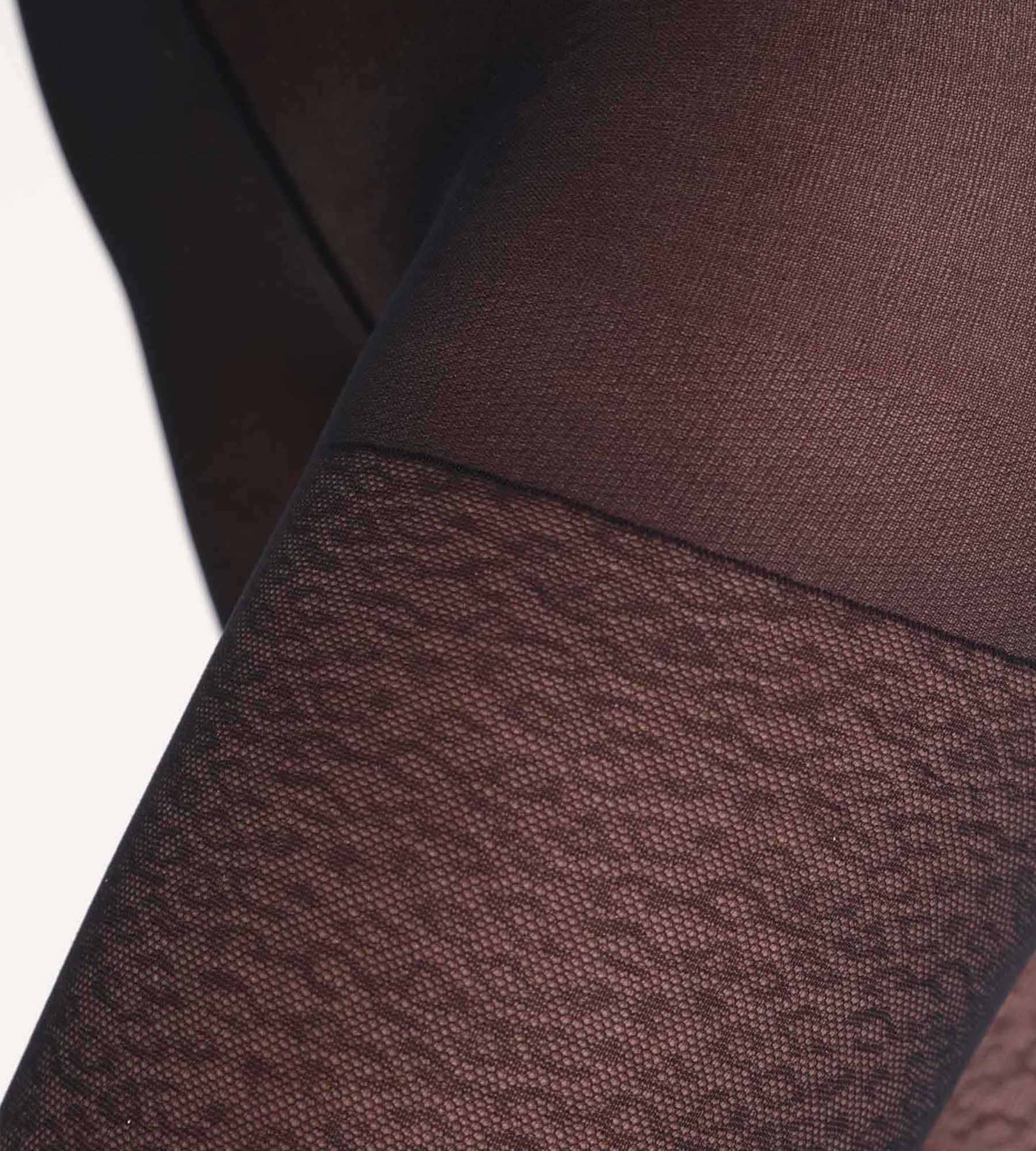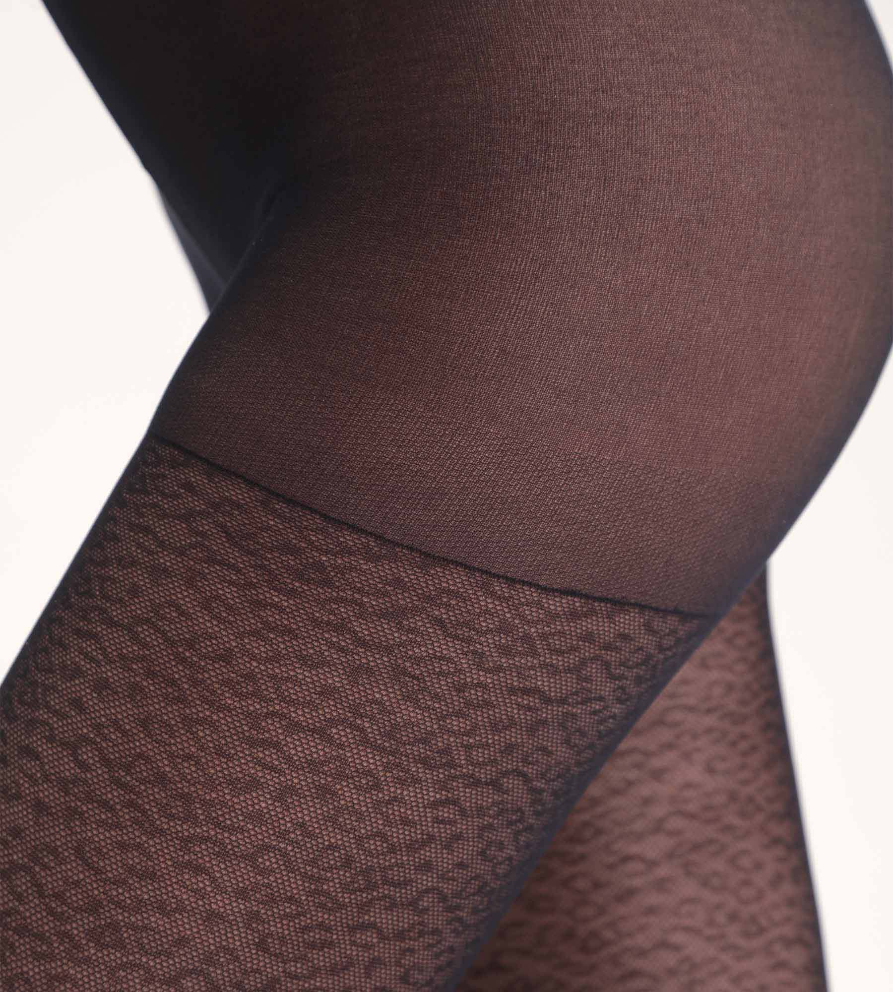 Revela tu lado más salvaje con las mallas negras para mujer de DIM Style con un estampado minimalista y gráfico de leopardo.