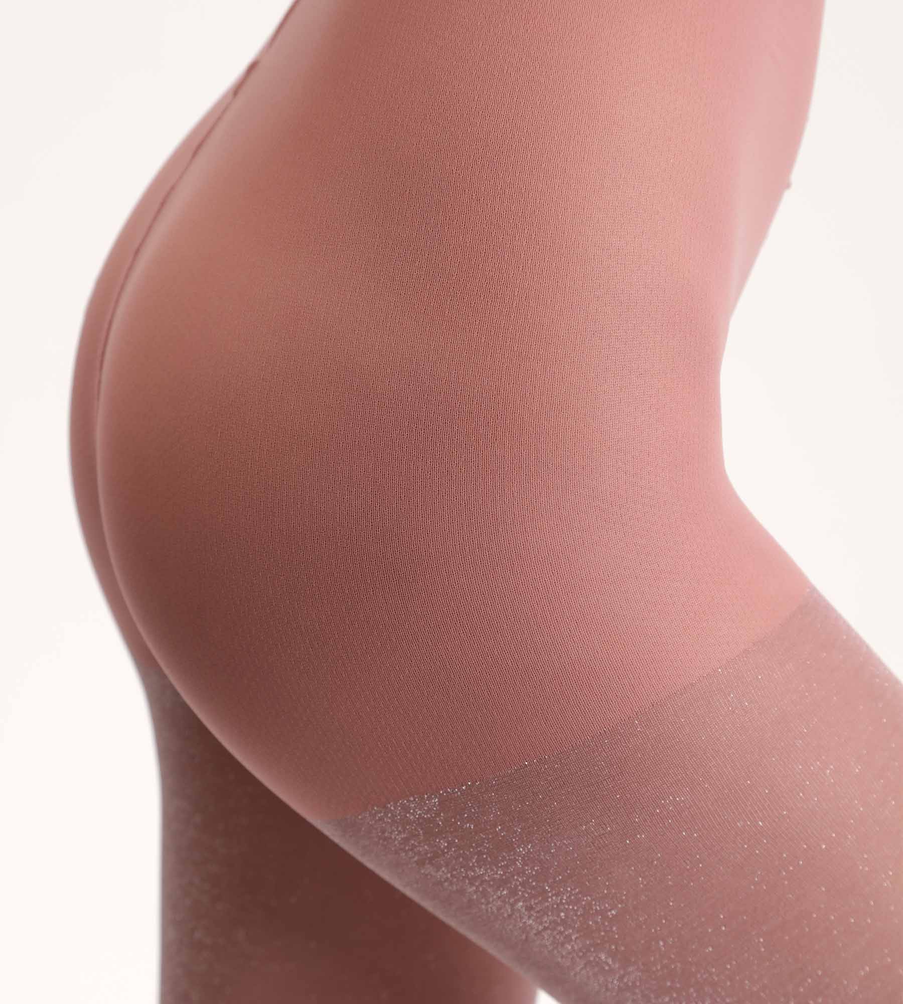 Fabricadas con gasa 42D rosa pálido e hilos de Lurex que atraen la luz, las mallas fantasía para mujer DIM Style subliman tus piernas con refinamiento y aportan una nota fresca a tus looks. Gracias a su braguita elástica que envuelve suavemente la cintura, las medias DIM Style se mantienen en su sitio sin dejar marcas en la cintura. Perfectas para un conjunto de noche o para alegrar tus conjuntos de diario, estas medias para mujer DIM son las aliadas de tus looks femeninos.
