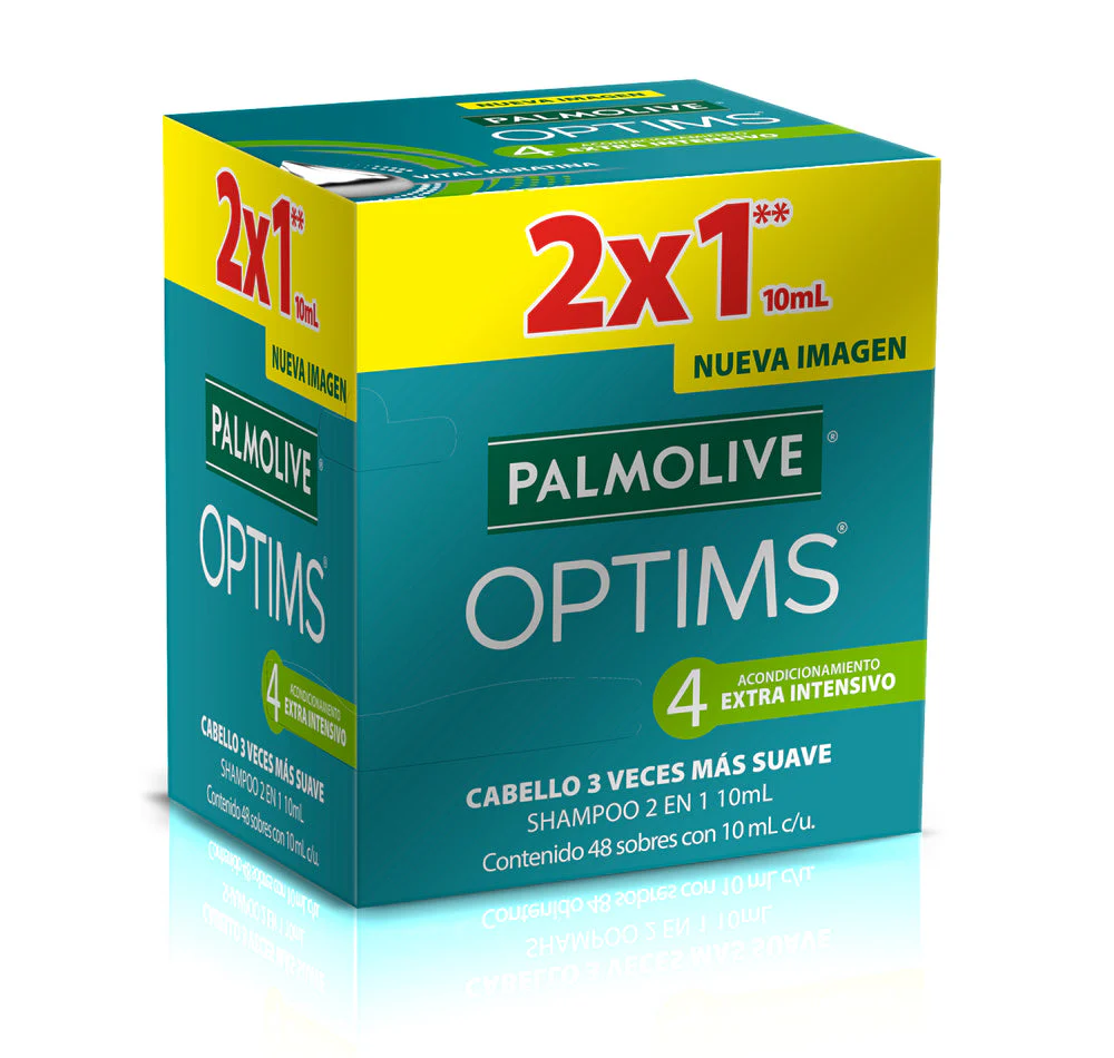 Nutre tu cabello y déjalo sedoso con el Shampoo 2 en 1 nivel 4 Acondicionamiento Extra Intensivo, que la línea Optims de Palmolive tiene para ti en una presentación de 48 sobres con 10 mililitros cada uno, una opción ideal para administrar durante los días o para cuando quieres ahorrar espacio en tu maleta. Mismos beneficios, en un empaque pequeño: su fórmula con vital-keratina dejará tu cabello 3 veces más suave y con brillo de impacto que dejará a todos con la boca abierta, pues sus resultados podrás notarlos al instante y a lo largo del día. Es un producto que se centra en las necesidades de toda la familia, pues remueve efectivamente la suciedad, desprende partículas ajenas que atrapa la cabellera durante el día y estimula las fibras para suavizarlo, mismos resultados que podrás comprobar al deslizar tus dedos sobre los mechones; además, su exquisito aroma te hará sentir en total comodidad, pues perdura por largas horas.