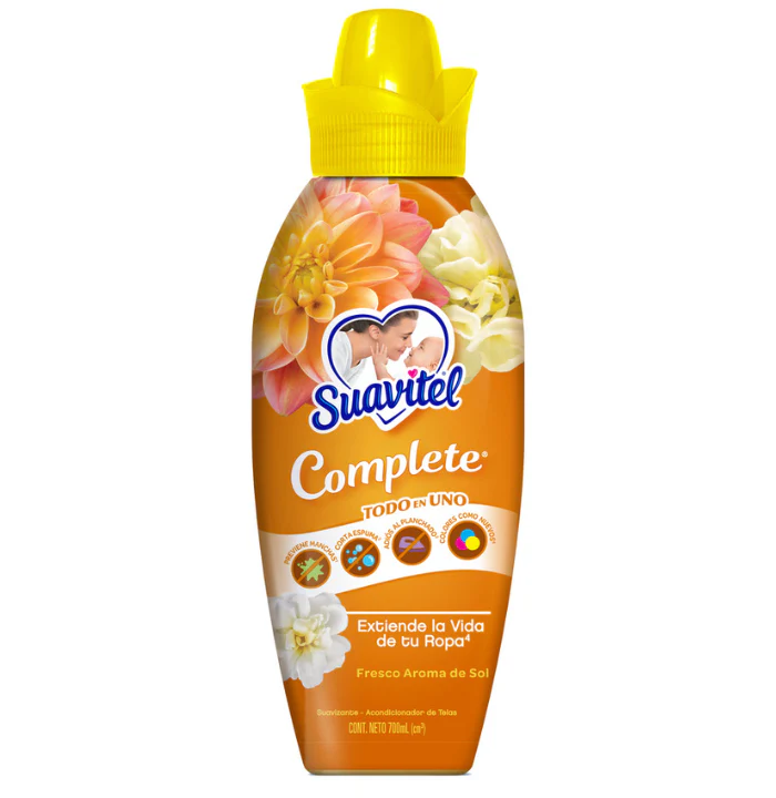 Suavizante Suavitel Complete Aroma de Sol De 700 Mililitros. Fragancia Irresistible. Previene Manchas Y Corta Espuma.