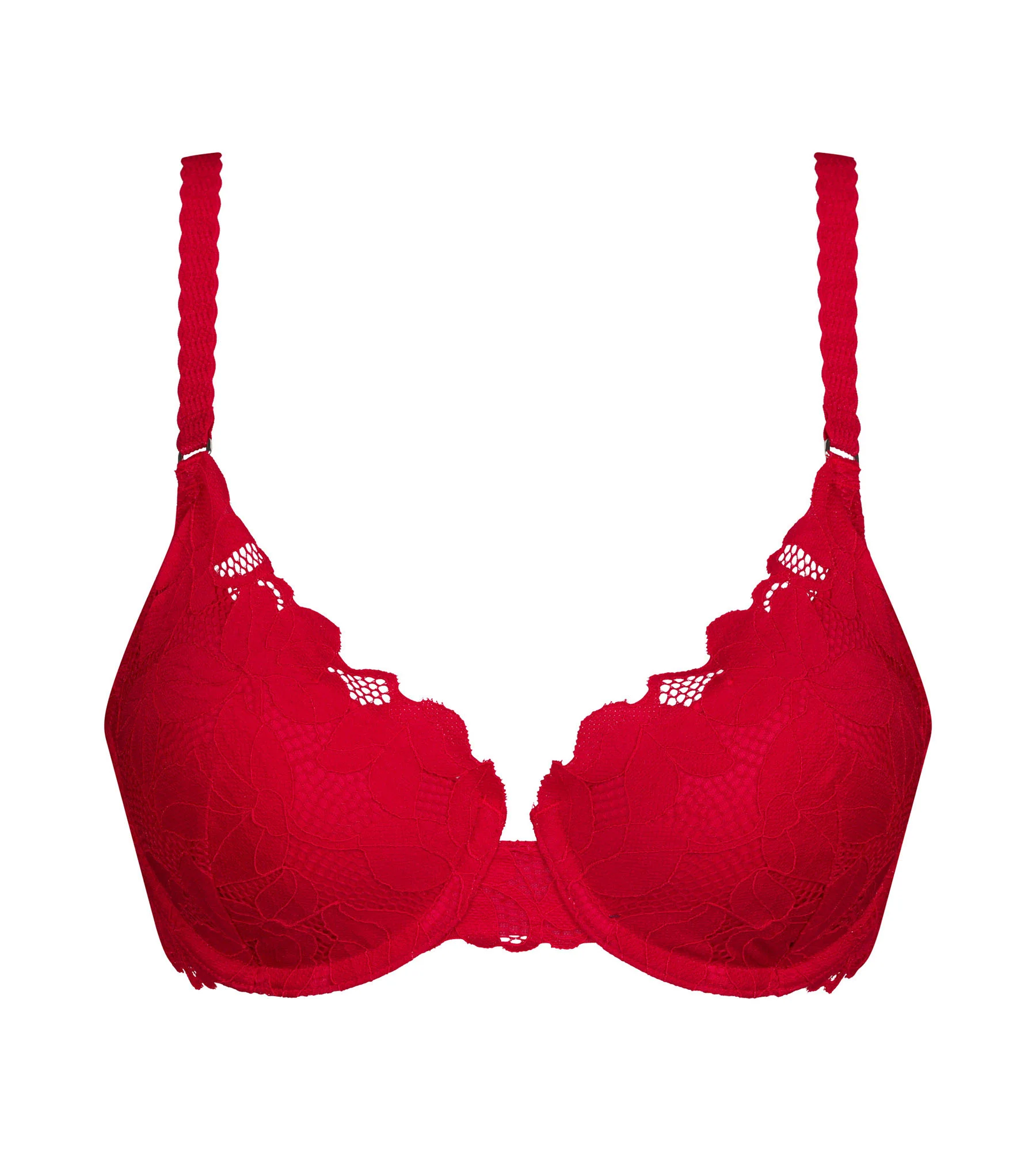 ¡Revela tu lado más glamuroso con el sujetador corbeille Dim Lacy de encaje floral rojo!