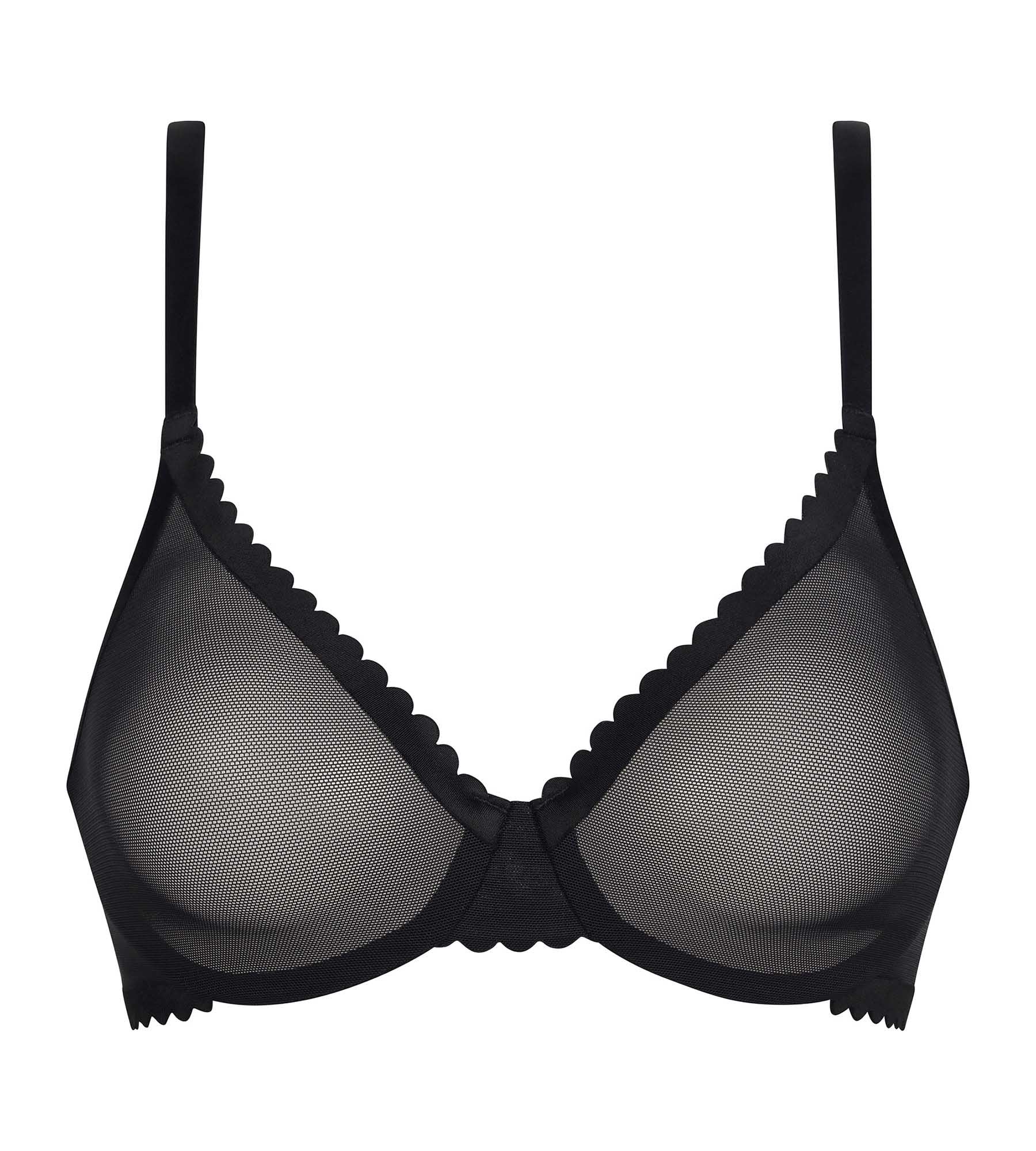 Sujeción y sensualidad combinadas en el sujetador corbeille Generous Cheeky de tul negro transparente.
