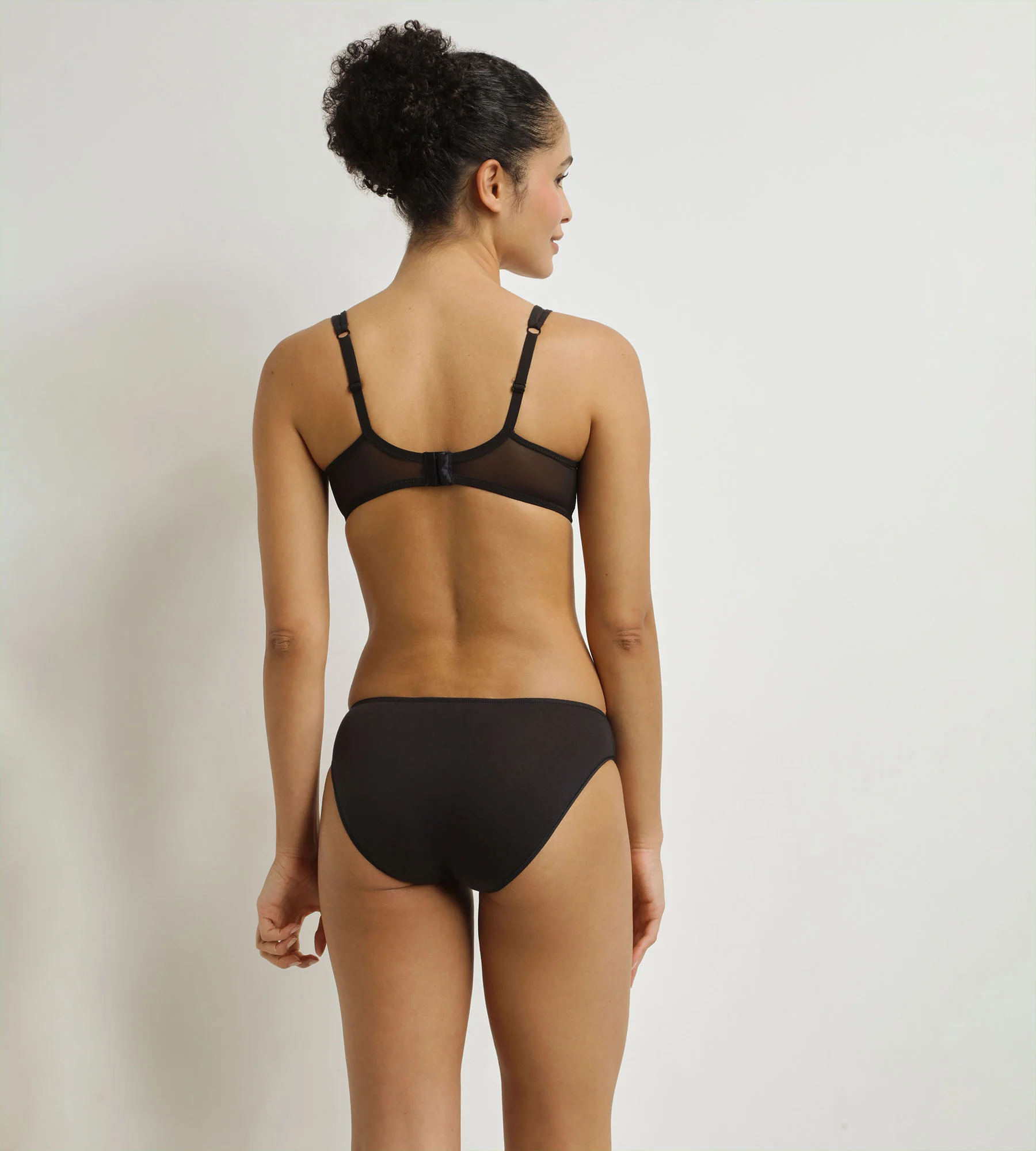 Luce tus curvas con el sujetador de gran capacidad con aros negro Generous Broderie Muy cómodo para el día a día, tu pecho estará perfectamente sujetos con este sujetador de mujer gracias a sus copas envolventes y aros, mientras que su microfibra súper suave garantiza una comodidad óptima. Para una ropa interior irresistible, combínalo con la braga de microfibra negra Generous Broderie.