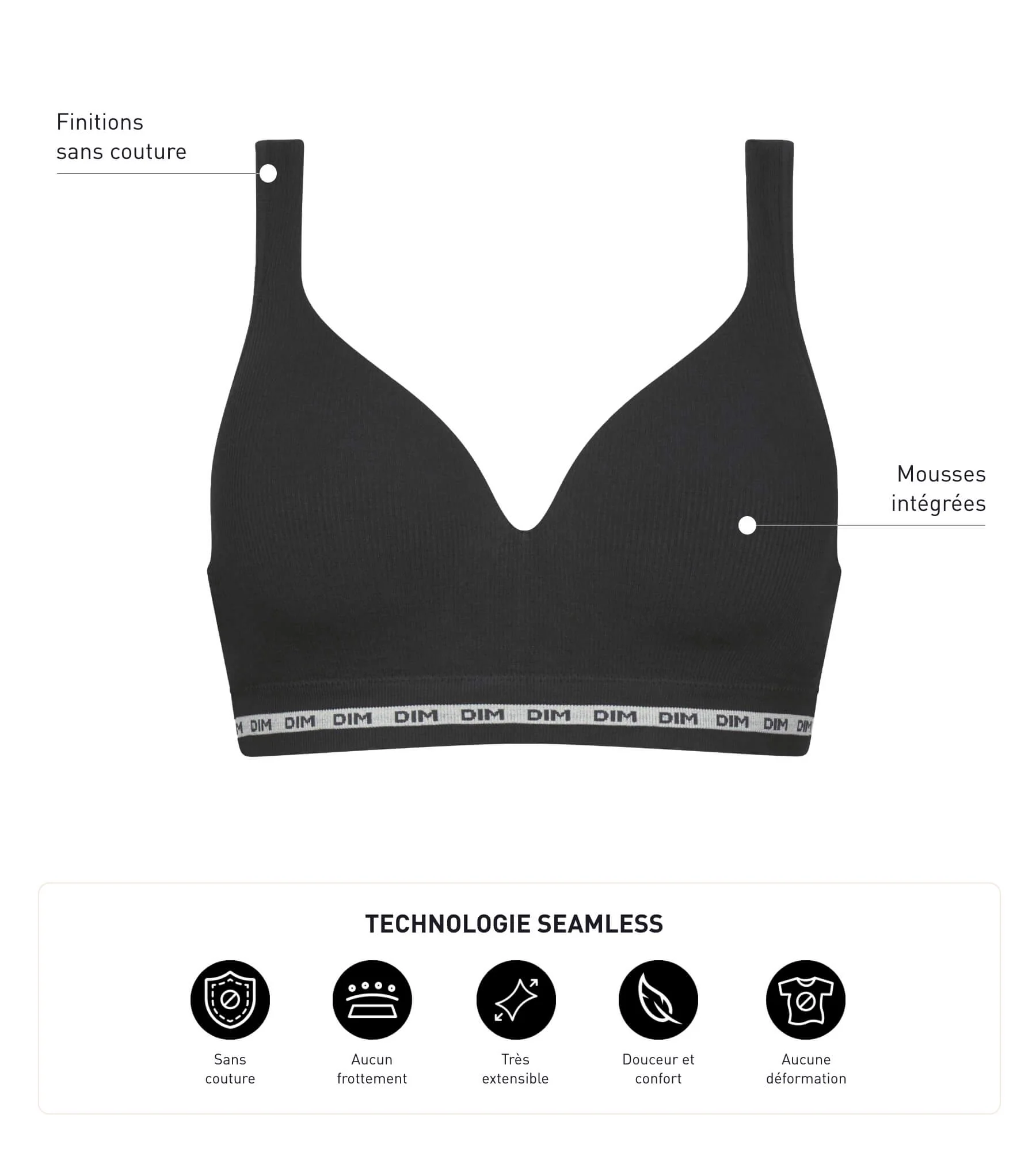 ¡Déjate llevar por el estilo casual del sujetador sin aros Negro Icon Seamless de Dim, en canalé y con escote pronunciado en forma de V