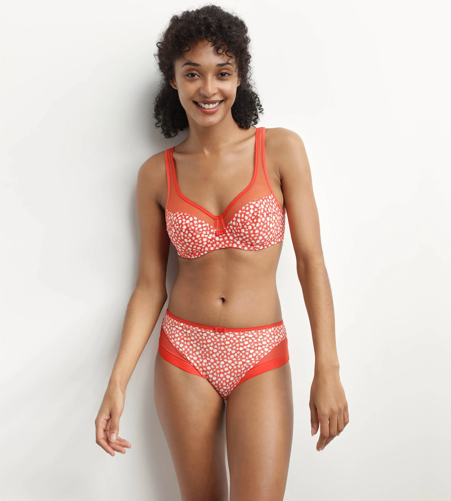 ¡Combina comodidad y feminidad con un diseño alegre como el del sujetador de gran capacidad con aros Rojo con flores blancas Generous de Dim!