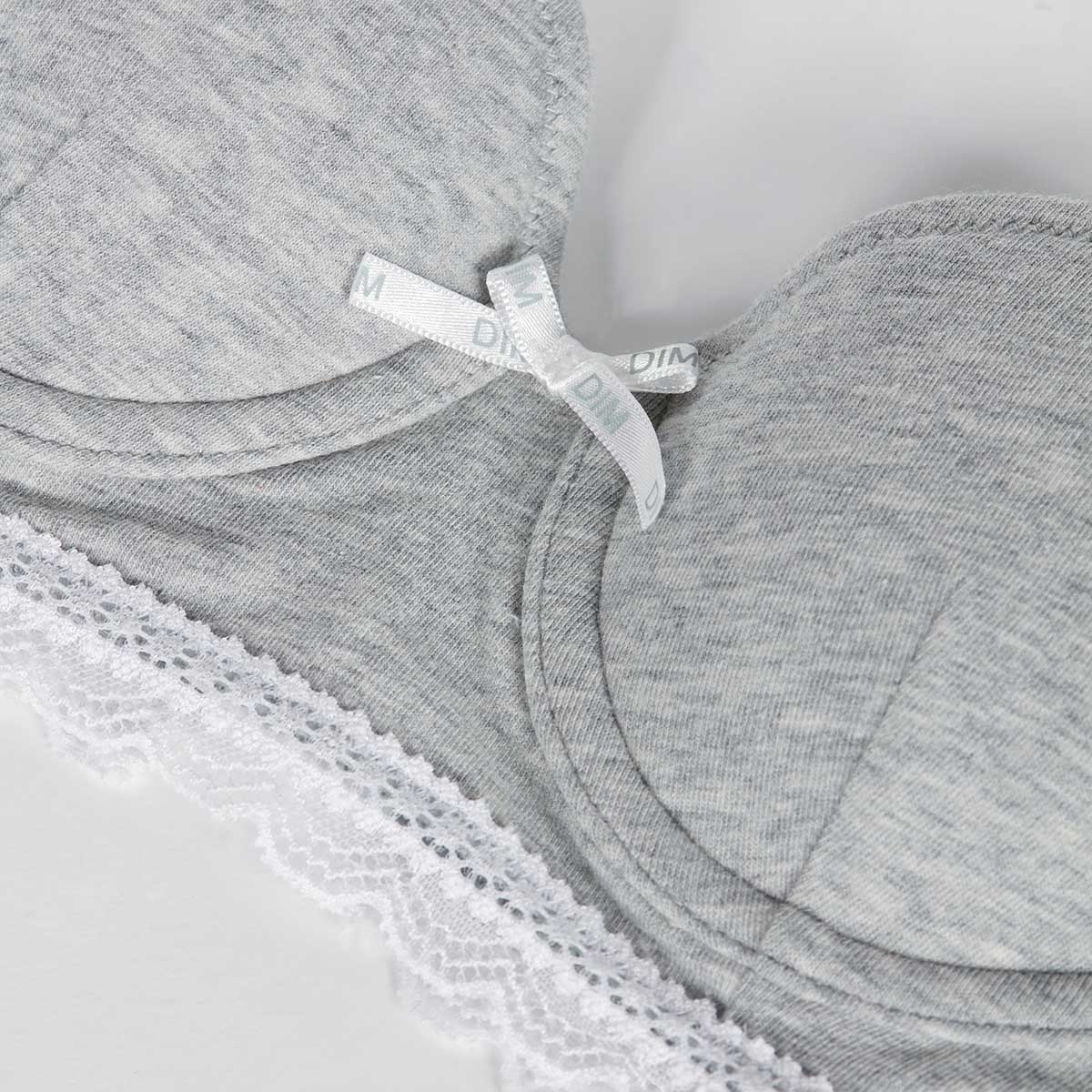 Con su color gris jaspeado muy desenfadado y su canesú de encaje bajo la parte inferior, esta ropa interior de niña de algodón elástico Dim Trendy ofrece brillantemente un estilo envolvente y refinado. Especialmente diseñado para el crecimiento de los pechos de las adolescentes, este sujetador infantil está fabricado con copas moldeadas que se ajustan perfectamente al pecho sin molestias.