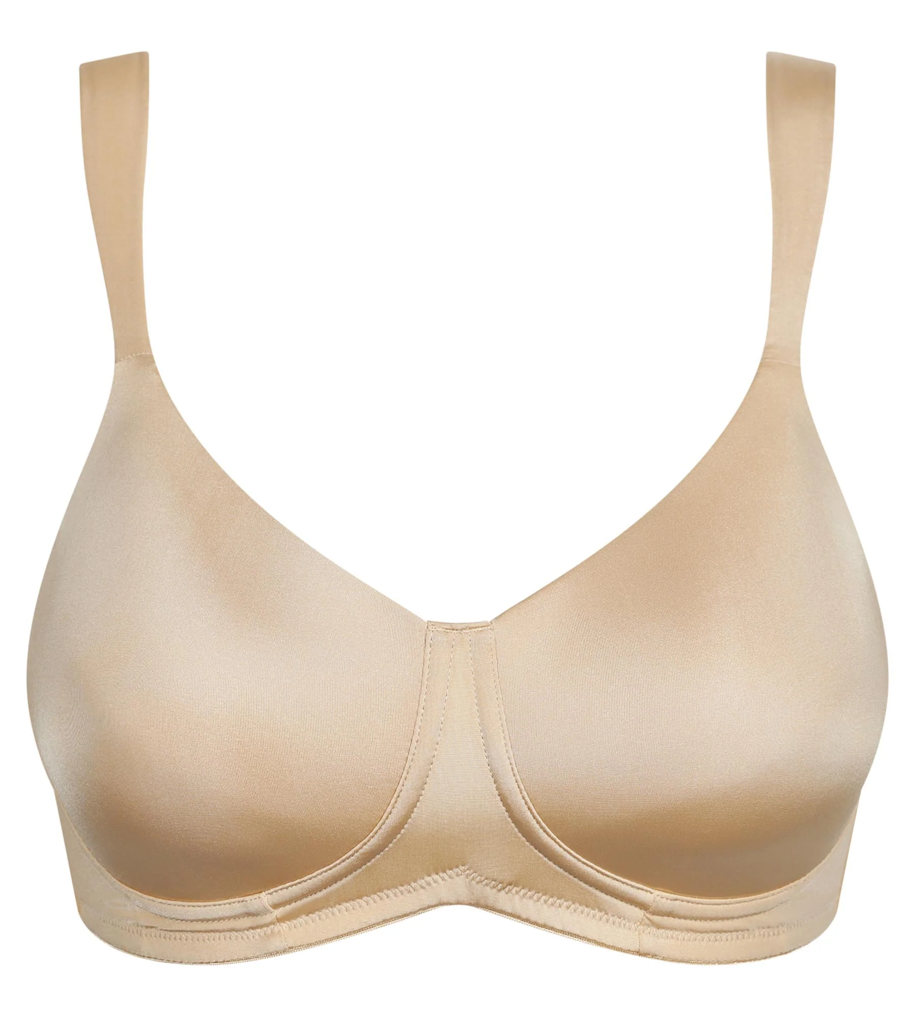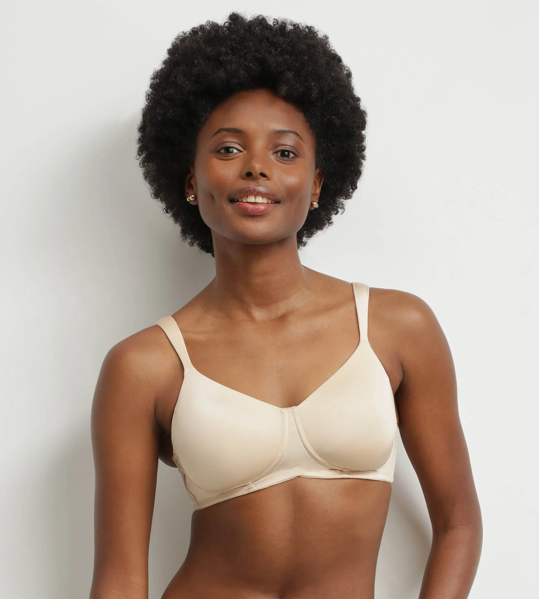 Con unas copas finas con bolsillos bilaterales de algodón elástico, este sujetador color nude puede acoger unas prótesis mamarias. Echa un vistazo a la nuestras*. El separador del sujetador es ancho, los tirantes son acolchados y el sujetador apenas se percibe con tu ropa.