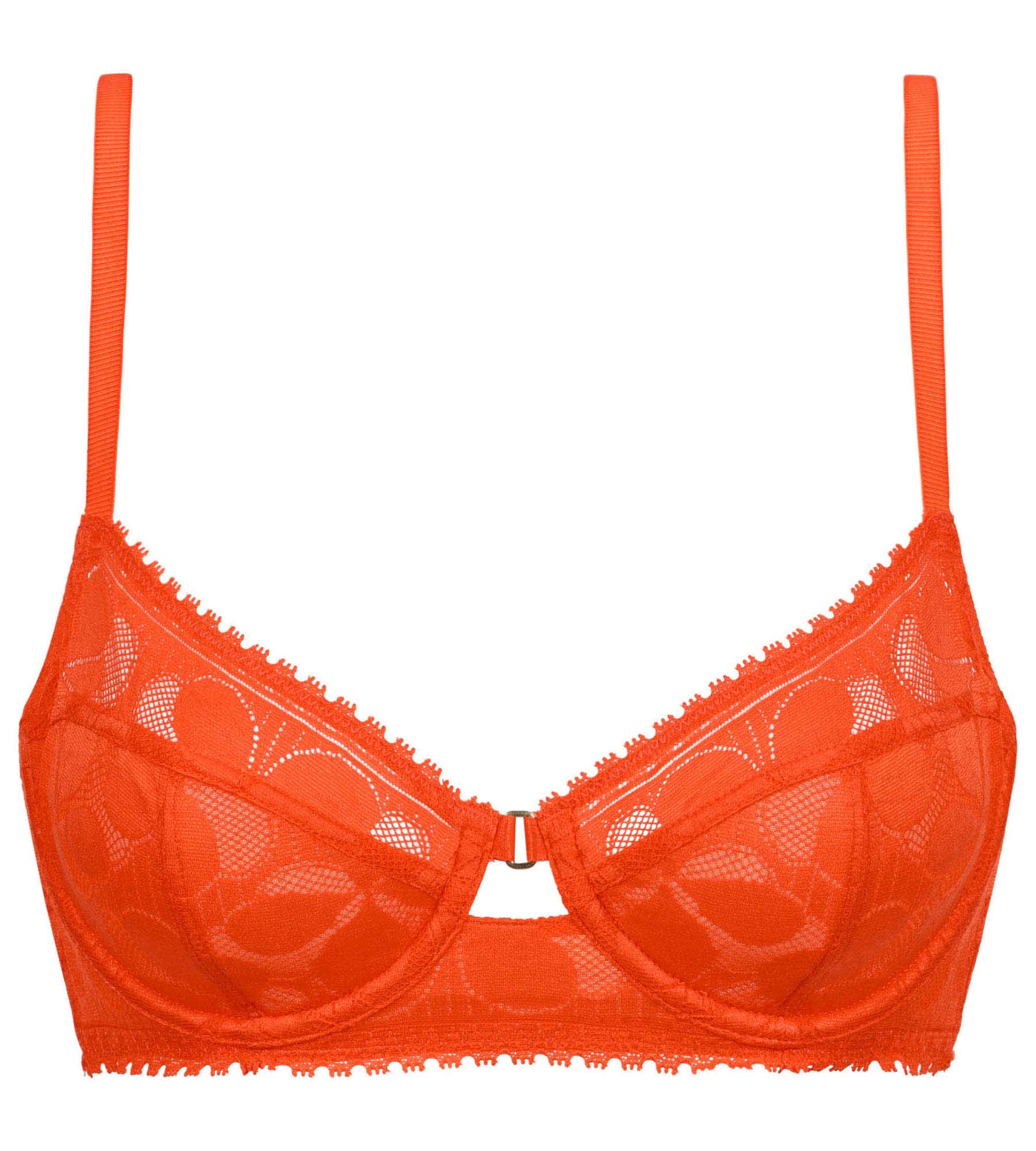 Disfruta del encanto acidulado y chic del sujetador bordado Dim Art Flower en encaje floral naranja.