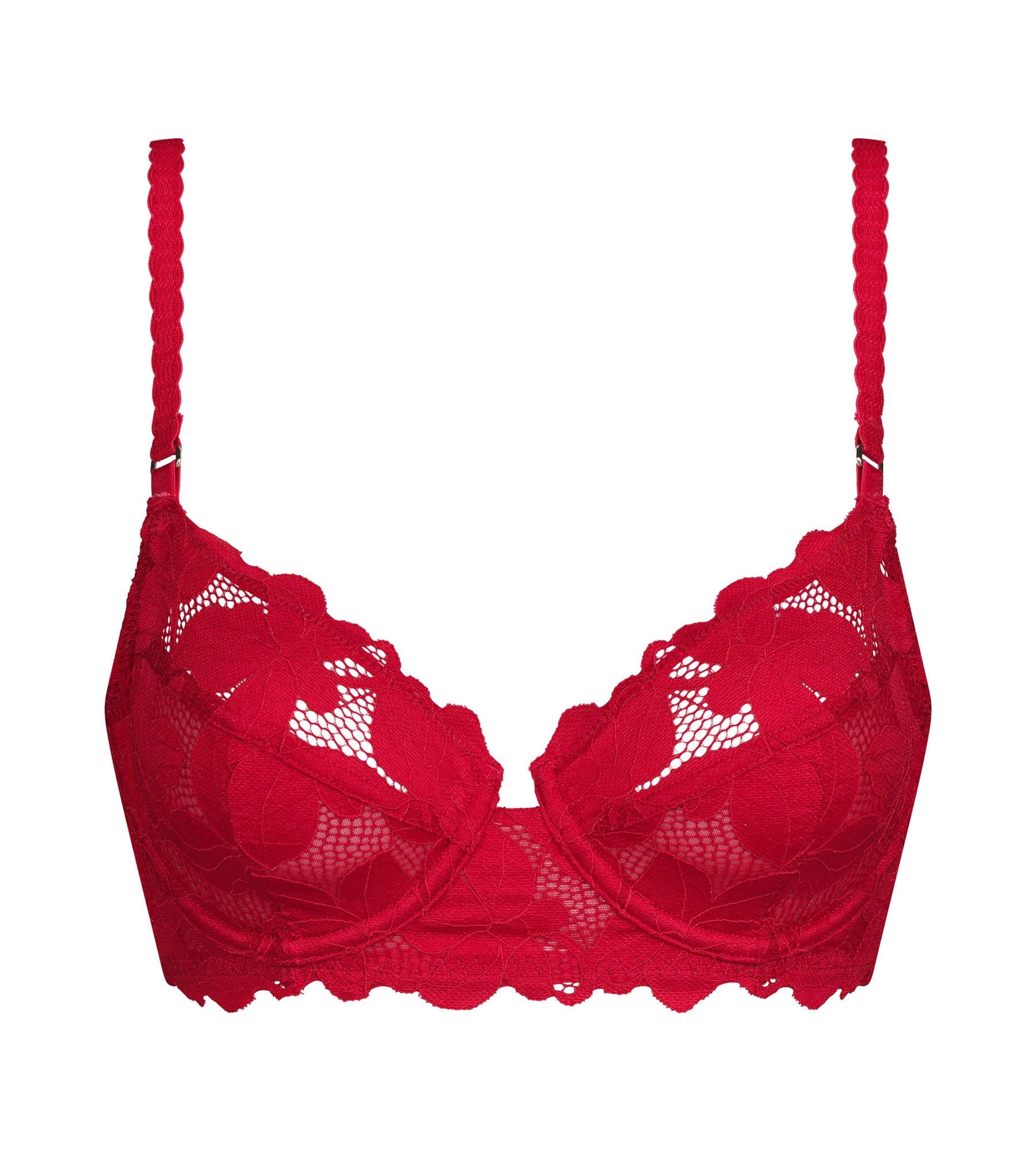 Con sus aros redondos y sus copas suaves, este sujetador push-on Dim Lacy ofrece una sujeción eficaz, cómoda y refinada. Su color Rouge Chéri y su motivo floral realzan su busto con seguridad y sofisticación. El sujetador con aros Dim Lacy ofrece una sujeción impecable, incluso para los pechos generosos, gracias a su banda de encaje estructurante y a su abertura en la espalda.