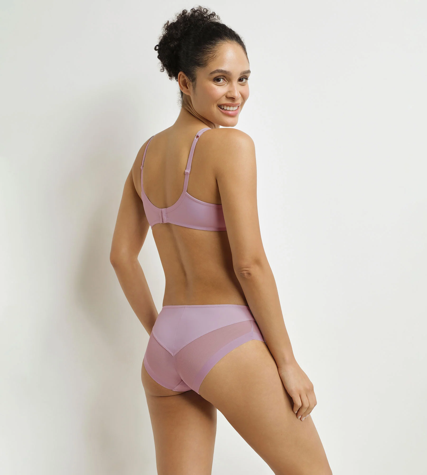 Combina sujeción, comodidad y succión con el sujetador push-up con aros de microfibra y tul Generous Violet.