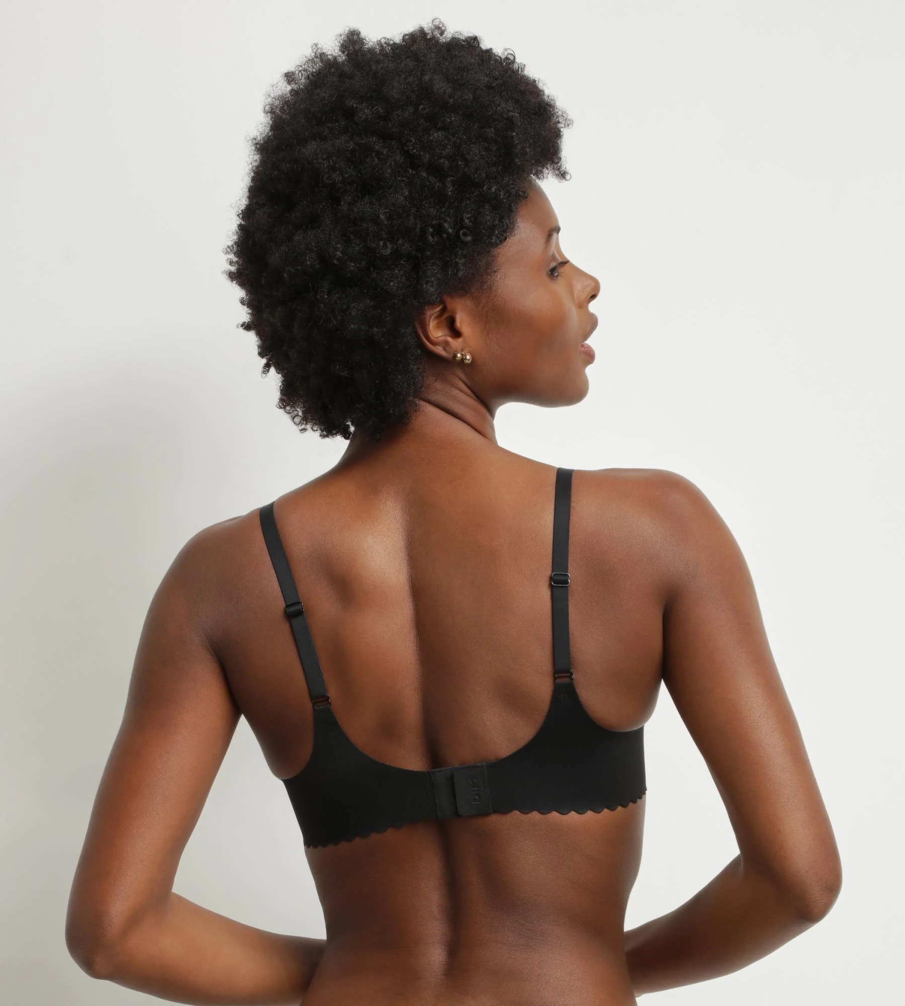 Este sujetador es apto para todos los tamaños de pechos. Combínalo con la braguita festoneada negra a juego de la línea Body Touch. ¡Muy chic!
