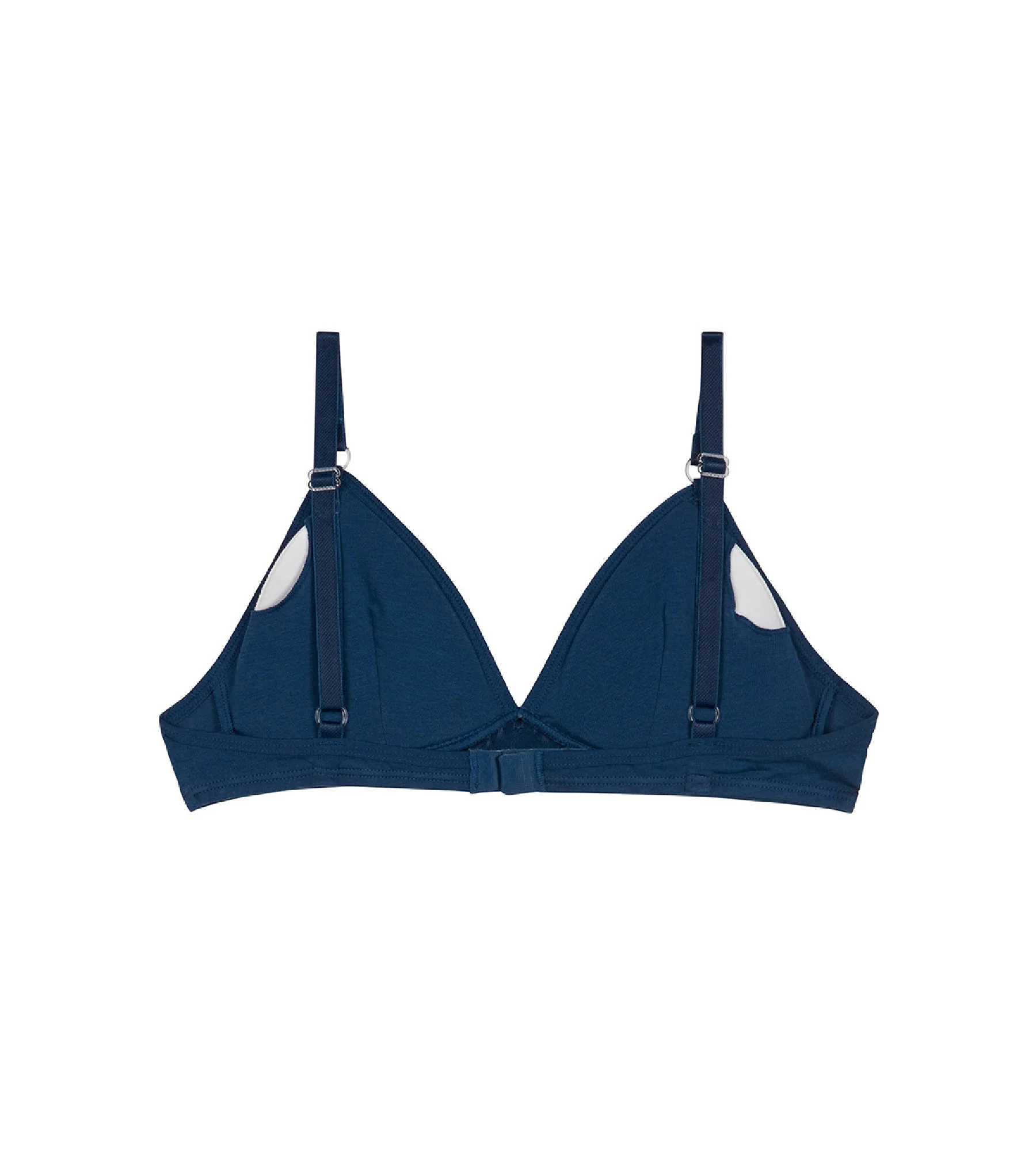 - Su forma triangular sin aros, cómoda y femenina