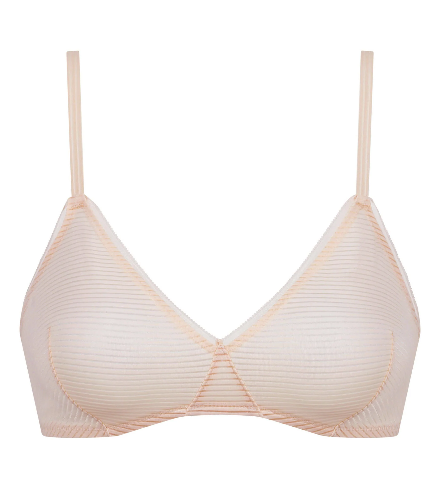 Ligero y glamuroso, opta por el sujetador de triángulo sin aros Rose Ballerine Dim x Inès de La Fressange con rayas refinadas.