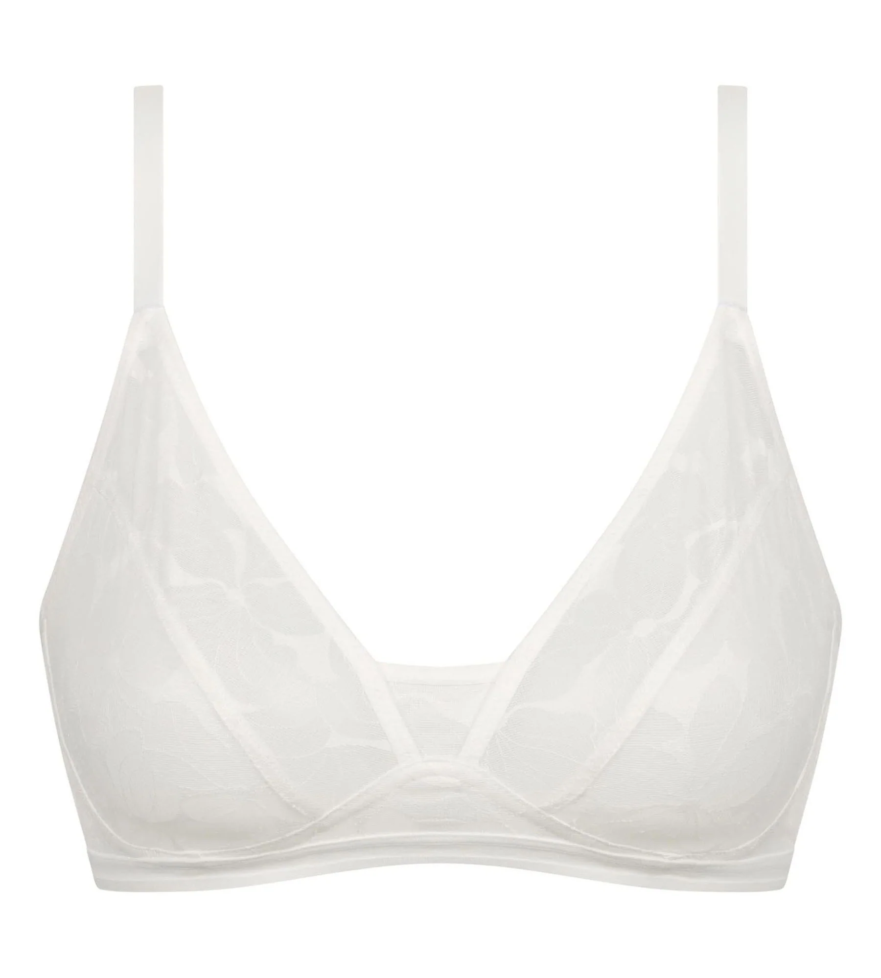 Estética ligera y sujeción discreta con el sujetador triángulo sin aros de encaje floral Dim Bloom White.
