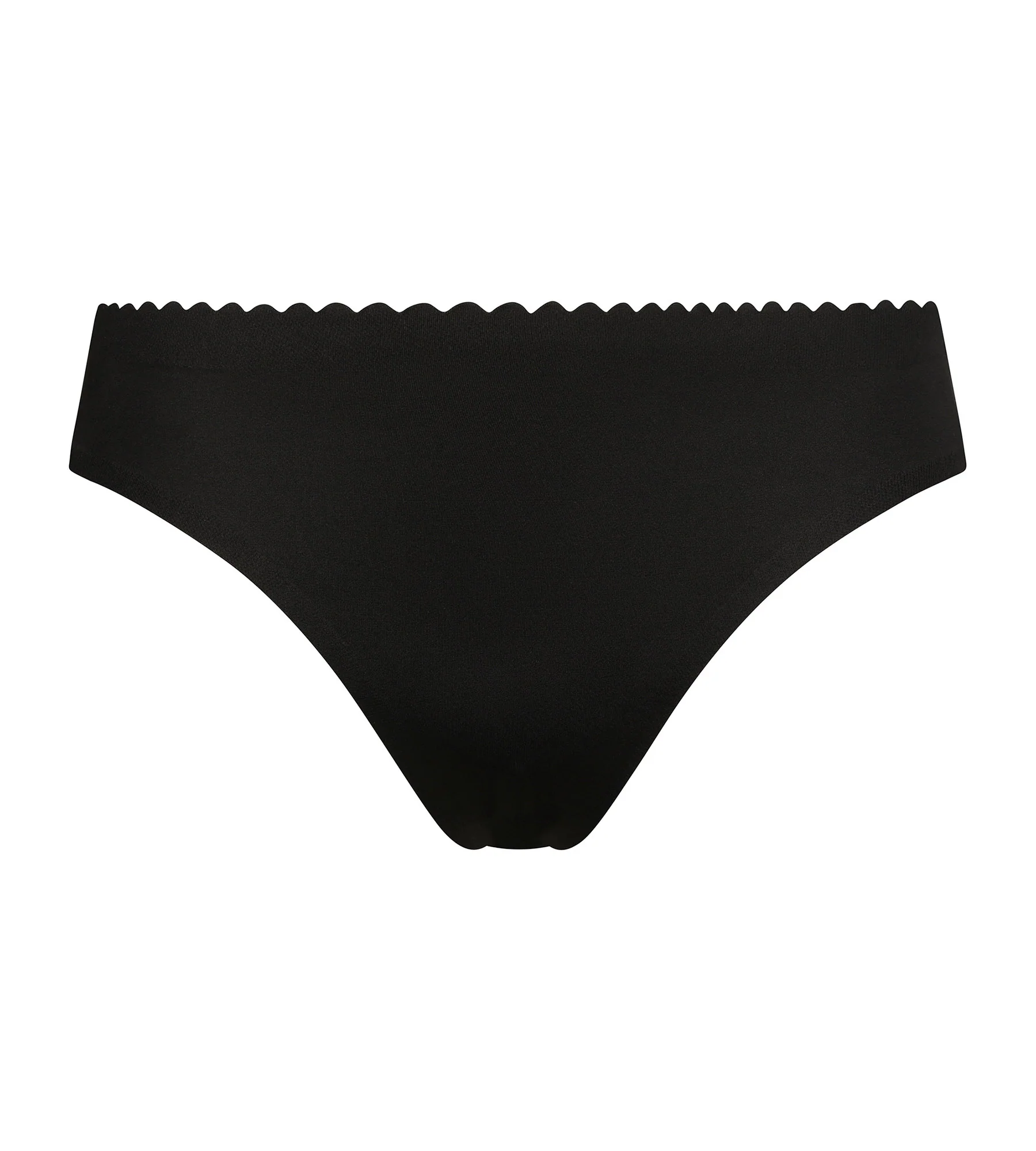 Enamórate del corte invisible, cómodo y femenino del tanga para mujer Body Touch Cheeky de microfibra y tul negro.