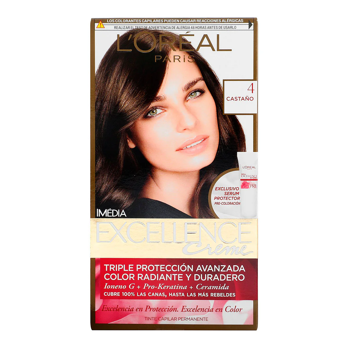 Tinte L’Oreal Excellence No.4, Castaño. Una Pieza. Porque Tú Lo Vales. 100% Cobertura De Canas, Obtén Un Color Profundo Y Duradero.