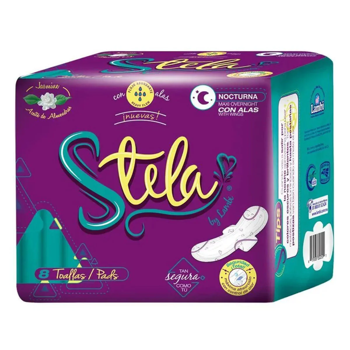 Toalla Sanitaria Femenina Stela. Nocturna, Flujo Abundante, Con Alas. Un Paquete De 8 Piezas. Siéntete Relajada Y Segura. La Toalla Femenina Que Ofrece Libertad, Comodidad Y Frescura.