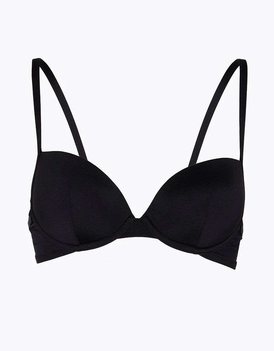 Un top de bikini de diseño esencial, perfecto para quienes buscan practicidad y comodidad. El forro frontal garantiza un ajuste confortable, mientras que la microfibra elástica se adapta de forma natural al cuerpo, ofreciendo una libertad de movimiento óptima.