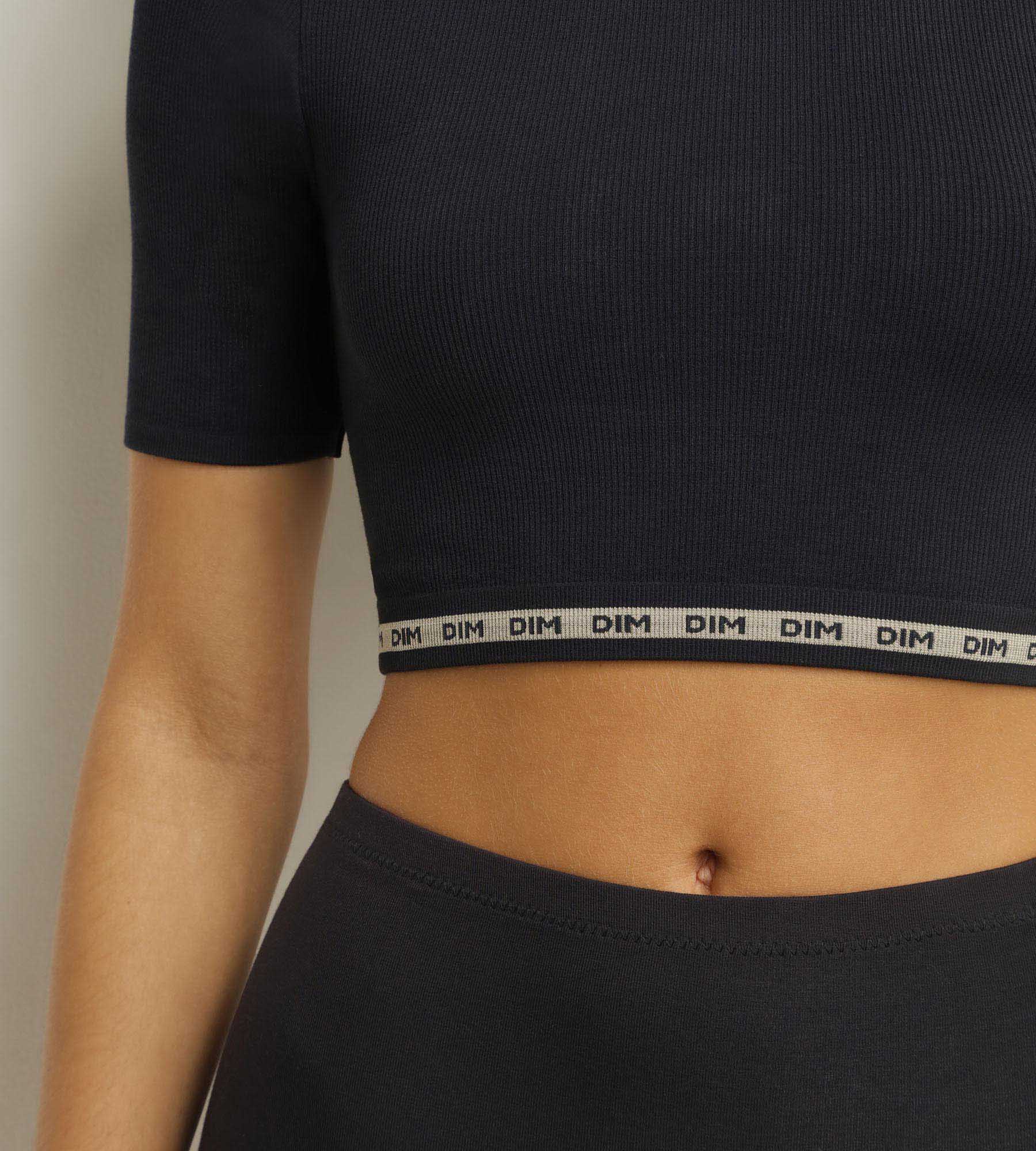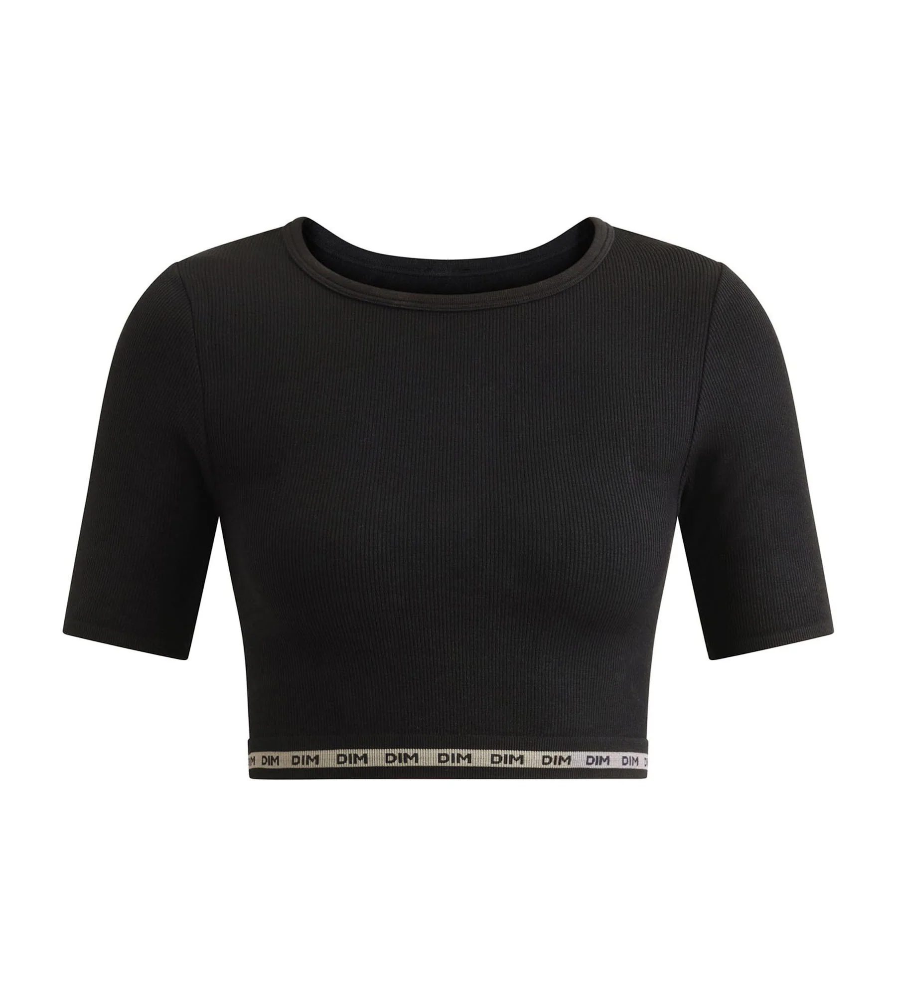 Muévete con soltura y modernidad gracias a la camiseta para mujer Dim Icons Seamless, ¡de microfibra acanalada negra sin costuras!