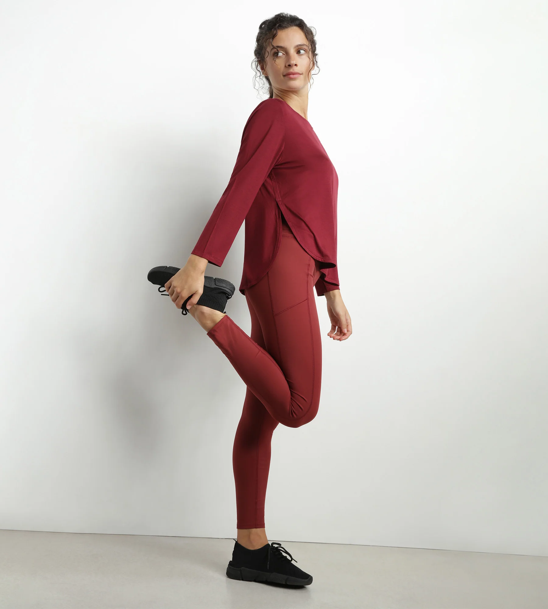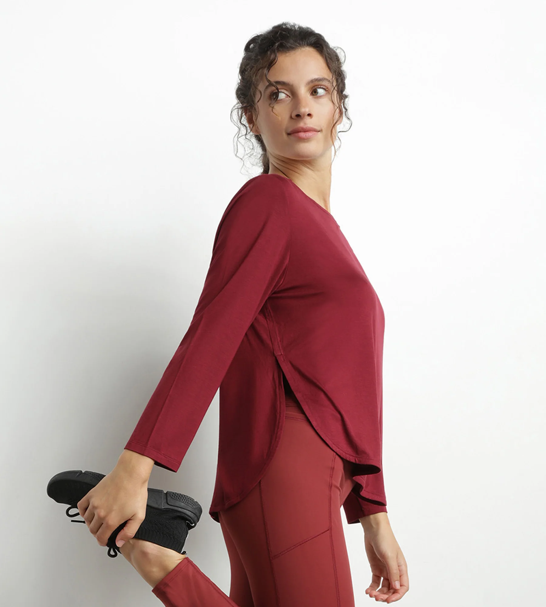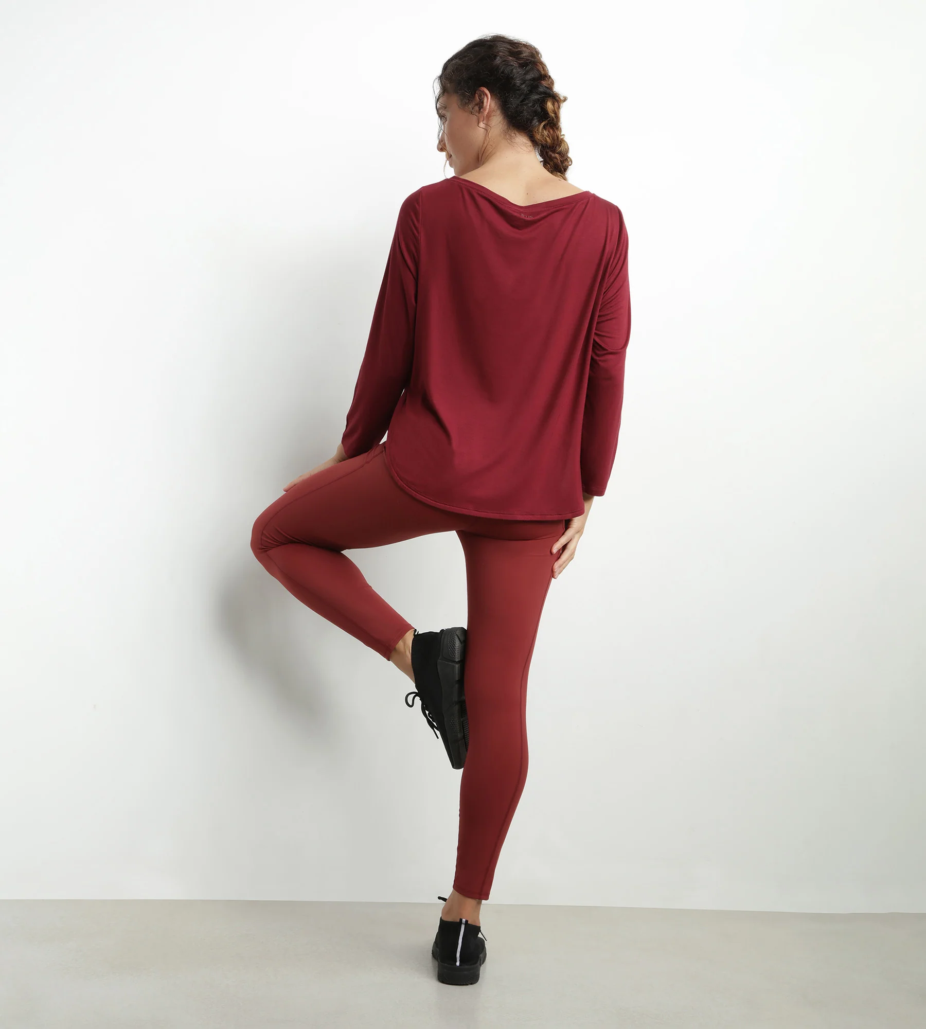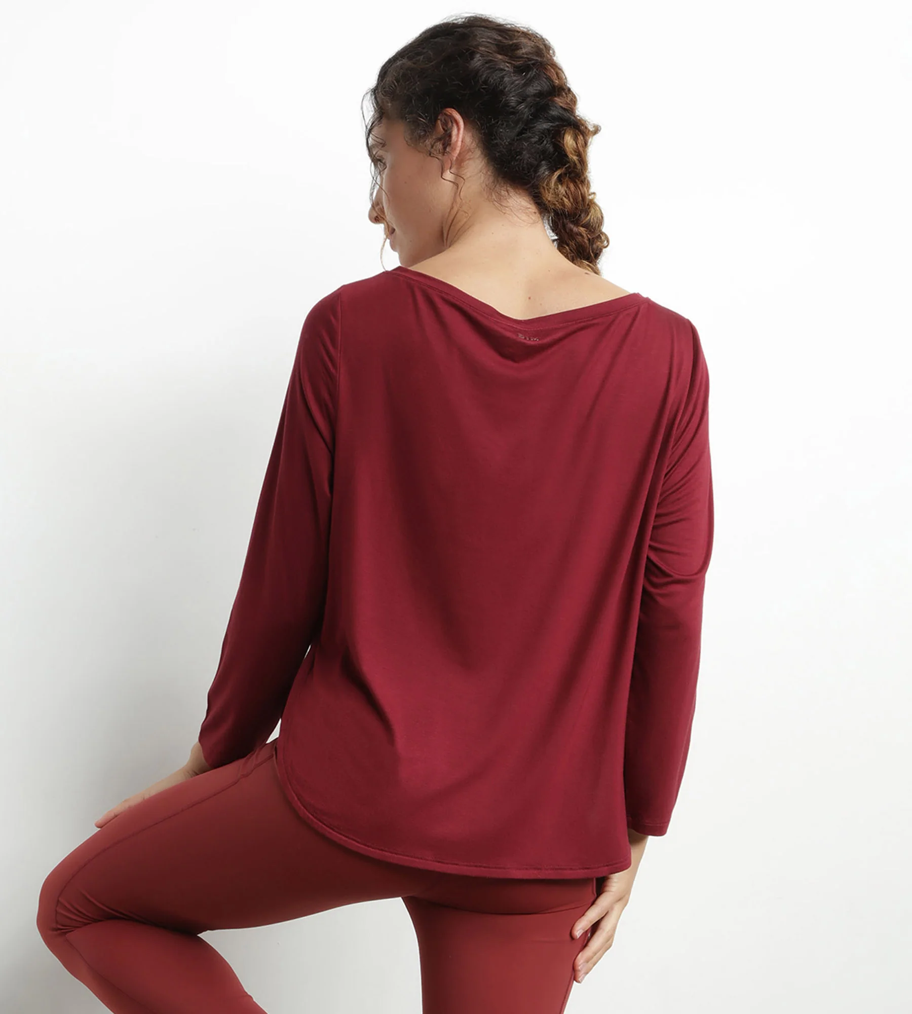 Elige el top deportivo de viscosa para mujer Dim Move con su corte holgado y su elegante color burdeos.
