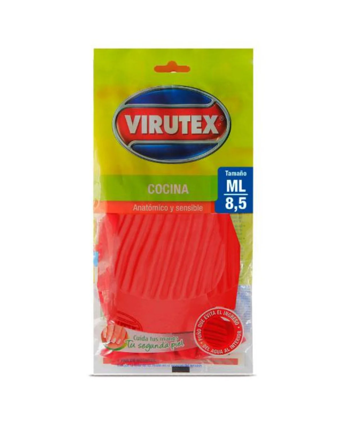 Guante especialista recomendado para la cocina, ya que poseen una empuñadura ajustada que evita el ingreso de líquidos durante su uso. Posee tratamiento antibacterial.